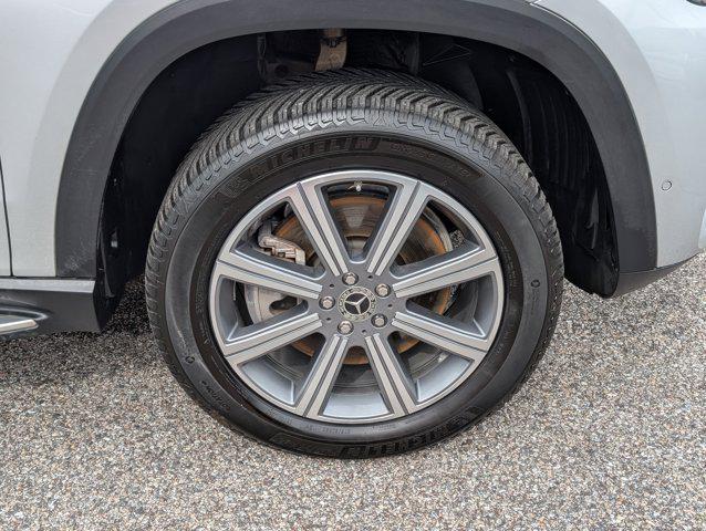 Iridium Silver Metallic 2020 Mercedes-Benz GLS GLS 450 4MATIC® 4MATIC® 9-Speed Automatic V613 Speakers, 3.27 Axle Ratio, 3rd row seats: split-bench, 4-Way Driver Lumbar Support, 4-Wheel Disc Brakes, 7-Seat Configuration, 8-Way Power Front Seats, ABS brakes, Adaptive suspension, Air Conditioning, Alloy wheels, AM/FM Radio, AM/FM radio: SiriusXM, Apple CarPlay®/Android Auto®, Auto High-beam Headlights, Auto tilt-away steering wheel, Auto-dimming door mirrors, Auto-dimming Rear-View mirror, Auto-leveling suspension, Automatic temperature control, Brake assist, Bumpers: body-color, Burmester® Surround Sound System, Child-Seat-Sensing Airbag, Compass, Delay-off headlights, Driver door bin, Driver vanity mirror, Dual front impact airbags, Dual front side impact airbags, Electronic Stability Control, Emergency communication system: eCall Emergency System, Four wheel independent suspension, Front anti-roll bar, Front Bucket Seats, Front Center Armrest w/Storage, Front dual zone A/C, Front reading lights, Fully automatic headlights, Garage door transmitter: Homelink, Genuine wood console insert, Genuine wood dashboard insert, Genuine wood door panel insert, Head restraints memory, Heated door mirrors, Heated Front Seats, Heated front seats, Illuminated entry, Knee airbag, Low tire pressure warning, MB-Tex Upholstery, Memory seat, Navigation system: MB Navigation, Occupant sensing airbag, Outside temperature display, Overhead airbag, Overhead console, Panic alarm, Passenger door bin, Passenger vanity mirror, Power adjustable front head restraints, Power door mirrors, Power driver seat, Power Front Seats w/Driver Memory, Power Liftgate, Power moonroof, Power passenger seat, Power steering, Power windows, Premium audio system: MBUX, Rain sensing wipers, Rear anti-roll bar, Rear fog lights, Rear reading lights, Rear seat center armrest, Rear window defroster, Rear window wiper, Remote keyless entry, Roof rack: rails only, Security system, Speed control, Speed-sensing steering, Speed-Sensitive Wipers, Split folding rear seat, Spoiler, Steering wheel memory, Steering wheel mounted audio controls, Tachometer, Telescoping steering wheel, Tilt steering wheel, Traction control, Trip computer, Turn signal indicator mirrors, Variably intermittent wipers, Weather band radio, and Wheels: 19' Twin 5-Spoke.