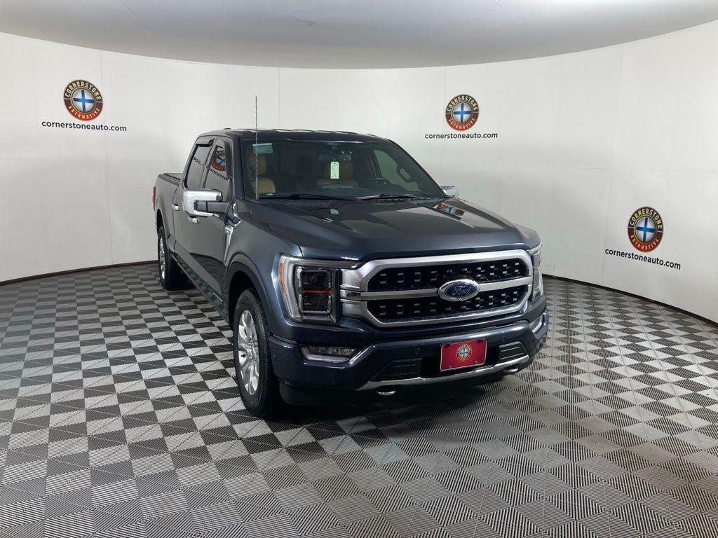 Leather Heated and Cooled Front Seats, Apple Car Play/Android Auto, Bed Liner, Bluetooth, Heated Rear Leather Seats, Premium Audio, Push Button Start, Rear View Camera!, Tow Package, V6 - Unbelievable Pick-Up!, Blind Spot Alert Technology, 3.5L PowerBoost Full-Hybrid V6, 4WD. 2021 Ford F-150 4D SuperCrew Platinum 4WD 3.5L PowerBoost Full-Hybrid V6 10-Speed Automatic Smoked Quartz Metallic Tinted Clearcoat 24/24 City/Highway MPG Awards: * NACTOY 2021 North American Truck of the Year Cornerstone Commitment offers new and used vehicle benefits and the YOU+ Service Plan. We are passionate about what we do and are committed to your Peace of Mind. Check out the rest of the great features on this vehicle. Equipment Group 701A High (Power Tailgate and Radio: B&O Unleashed Sound System by Bang & Olufsen), Ford Co-Pilot360 Active 2.0 Package (Active Park Assist 2.0 and BlueCruise Hands-Free Driving), Max Trailer Tow Package (Class IV Trailer Hitch Receiver, Extended Range 36 Gallon Fuel Tank, Integrated Trailer Brake Controller, and Pro Trailer Backup Assist), Tow Technology Package (360 Degree Camera), 3.5L PowerBoost Full-Hybrid V6, 4WD, 20 Polished Aluminum Wheels, 4-Wheel Disc Brakes, 8 Speakers, ABS brakes, Adjustable pedals, Air Conditioning, Alloy wheels, AM/FM radio: SiriusXM with 360L, Auto High-beam Headlights, Auto tilt-away steering wheel, Auto-dimming door mirrors, Auto-dimming Rear-View mirror, Automatic temperature control, Brake assist, Bumpers: body-color, Compass, Delay-off headlights, Driver door bin, Driver vanity mirror, Dual front impact airbags, Dual front side impact airbags, Electronic Stability Control, Emergency communication system: SYNC 4 911 Assist, Exterior Parking Camera Rear, Front anti-roll bar, Front Bucket Seats, Front Center Armrest, Front dual zone A/C, Front fog lights, Front License Plate Bracket, Front reading lights, Front wheel independent suspension, Fully automatic headlights, Garage door transmitter, Heated door mirrors, Heated front seats, Heated rear seats, Heated steering wheel, Illuminated entry, Low tire pressure warning, Memory seat, Navigation system: Connected Navigation (90-Day Trial), Occupant sensing airbag, Outside temperature display, Overhead airbag, Overhead console, Panic alarm, Passenger door bin, Passenger vanity mirror, Pedal memory, Power door mirrors, Power driver seat, Power passenger seat, Power steering, Power windows, Radio data system, Radio: B&O Sound System by Bang & Olufsen, Rain sensing wipers, Rear reading lights, Rear seat center armrest, Rear step bumper, Rear window defroster, Remote keyless entry, Security system, Speed control, Speed-sensing steering, Split folding rear seat, Steering wheel memory, Steering wheel mounted audio controls, SYNC 4 w/Enhanced Voice Recognition, Tachometer, Telescoping steering wheel, Tilt steering wheel, Traction control, Trip computer, Turn signal indicator mirrors, Unique Multi-Contour Leather Bucket Seats, Variably intermittent wipers,