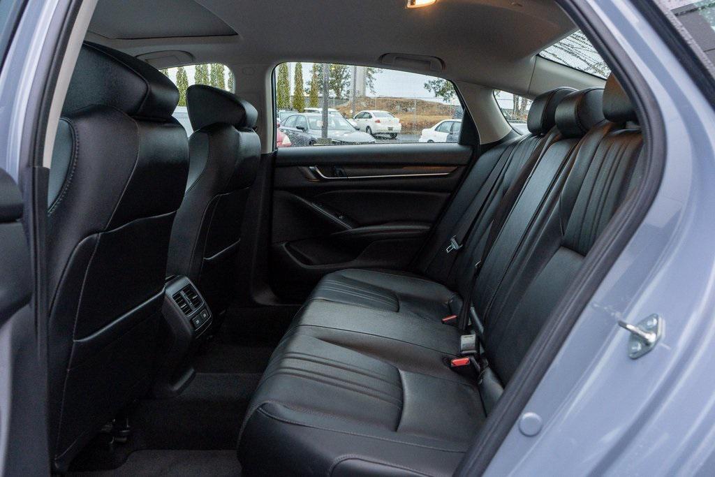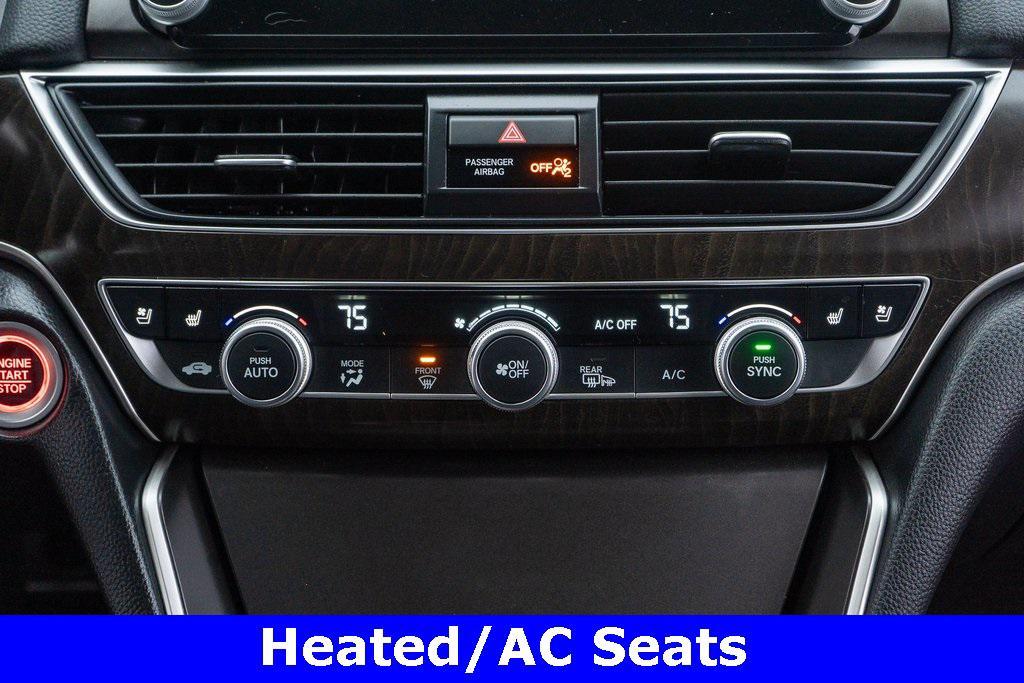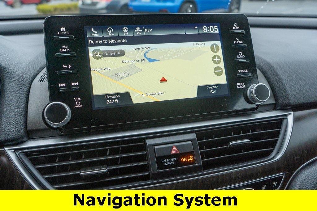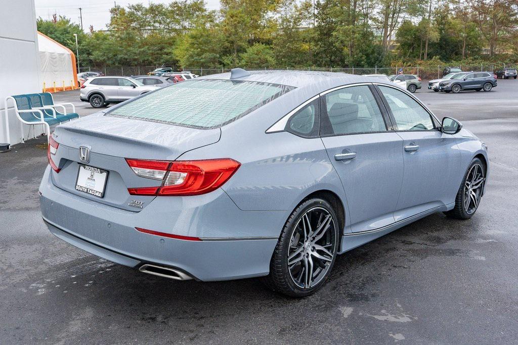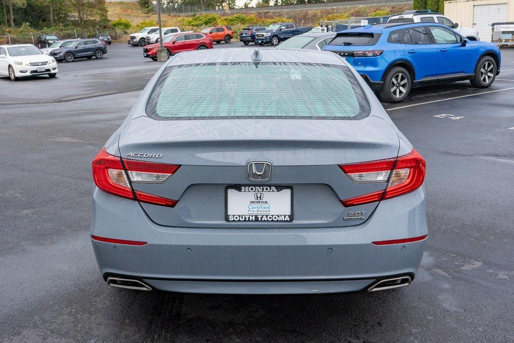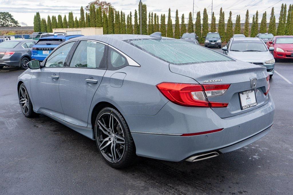 Recent Arrival! Certified. 2021 Honda Accord Touring 2.0T Sonic Gray Pearl 10 Speakers, 4-Wheel Disc Brakes, ABS brakes, Adaptive Cruise Control: Adaptive Cruise Control (ACC) with Low-Speed Follow, Adaptive suspension, Air Conditioning, Alloy wheels, AM/FM radio: SiriusXM, Apple CarPlay/Android Auto, Auto High-beam Headlights, Auto-dimming Rear-View mirror, Automatic temperature control, Blind Spot Information (BSI) System warning, Brake assist, Bumpers: body-color, Compass, Delay-off headlights, Driver door bin, Driver vanity mirror, Dual front impact airbags, Dual front side impact airbags, Electronic Stability Control, Emergency communication system: HondaLink, Exterior Parking Camera Rear, Forward collision: Collision Mitigation Braking System (CMBS) + FCW mitigation, Four wheel independent suspension, Front anti-roll bar, Front Bucket Seats, Front Center Armrest, Front dual zone A/C, Front fog lights, Front reading lights, Fully automatic headlights, Garage door transmitter: HomeLink, Heads-Up Display, Heated & Ventilated Front Bucket Seats, Heated door mirrors, Heated front seats, Heated rear seats, Illuminated entry, Knee airbag, Lane Departure Warning System, Leather steering wheel, Leather-Trimmed Seats, Low tire pressure warning, Memory seat, Navigation System, Occupant sensing airbag, Outside temperature display, Overhead airbag, Overhead console, Panic alarm, Passenger door bin, Passenger vanity mirror, Power door mirrors, Power driver seat, Power moonroof, Power passenger seat, Power steering, Power windows, Radio data system, Radio: 450-Watt AM/FM/HD Premium Audio System, Rain sensing wipers, Rear anti-roll bar, Rear seat center armrest, Rear window defroster, Remote keyless entry, Security system, Speed control, Speed-sensing steering, Speed-Sensitive Wipers, Split folding rear seat, Steering wheel mounted audio controls, Tachometer, Telescoping steering wheel, Tilt steering wheel, Traction control, Trip computer, Turn signal indicator mirrors, Variably intermittent wipers, Ventilated front seats, Wheels: 19'' Machine-Finished Alloy w/Gray Inserts. I4 DOHC 16V Turbocharged 4D Sedan 10-Speed Automatic FWD CARFAX One-Owner. 22/32 City/Highway MPG HondaTrue Certified Details: * Powertrain Limited Warranty: 84 Month/100,000 Mile (whichever comes first) from original in-service date * Warranty Deductible: $0 * Vehicle History * Vehicles purchased within New Vehicle Limited Warranty period: extends New Vehicle Limited Warranty to 5 years*/60,000 miles*. Honda Care Roadside Assistance for 2 year/100,000 miles (whichever occurs first). Up to two complimentary oil changes within the first year of ownership. SiriusXM 90-Day Trial. * Transferable Warranty * Roadside Assistance * 182 Point Inspection * Limited Warranty: 24 Month/100,000 Mile (whichever comes first) after new car warranty expires or from certified purchase date