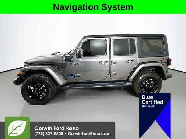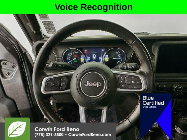 This Jeep Wrangler is well equipped and includes these key features and benefits, Four Wheel Drive, Adaptive Cruise Control, Heated Seats, Navigation System, Touchscreen Controls, Backup Camera, Keyless Access with Push Button Start, Automatic Headlights, Apple CarPlay, Android Auto, Voice Recognition, Bluetooth Hands-Free, Factory Tow Package, 7 & 4 Pin Wiring Harness, 700 Amp Maintenance Free Battery, Adaptive Cruise Control w/Stop, Advanced Brake Assist, Advanced Safety Group, Auto High Beam Headlamp Control, Auxiliary Switches, Blue Tow Hooks, Body Color 3-Piece Hard Top, Body Color Door Handles, Body Color Exterior Mirrors, Body Color Front Bumper, Body Color Grille w/Gloss Black Rings, Body Color Power Locking Fuel Filler Door, Body Color Rear Bumper w/Step Pads, Caramel Interior Accents, Cargo Compartment Floor Mat, Class II Receiver Hitch, Cold Weather Group, Full Speed Forward Collision Warning Plus, Heated Front Seats, Heated Steering Wheel, High Altitude Package, Leather Trimmed Bucket Seats, Leather Wrapped Park Brake Handle, Navigation System, Premium Dark Exterior Accents, Quick Order Package 29N High Altitude, Remote Proximity Keyless Entry, Remote Start System, Safety Group, Summit Badging, Trail Rail Management System, Trailer Tow & HD Electrical Group, Wrapped I/P Bezel w/Caramel Stitch. Priced below KBB Fair Purchase Price! Available at Corwin Ford Reno located at 11111 South Virginia St.2021 Jeep Wrangler Unlimited Sahara High Altitude 4xe 4WD 2.0L I4 DOHC Granite Crystal Metallic Clearcoat Certified.Certification Program Details: Ford Blue Advantage: Blue Certified* 139 Point Inspection* Transferable Warranty* Vehicle History* Warranty Deductible: $100* Roadside Assistance* Limited Warranty: 3 Month/4,000 Mile (whichever comes first) after new car warranty expires or from certified purchase date* and 11,000 FordPass Rewards Points to use toward first maintenance visitSee us today at Corwin Ford Reno or call us at (775) 329-8800. Family owned for over 100 years! Excellent selection of New and Used vehicles, Financing options. Serving Reno, Carson City, Sparks, the North Valleys, Spanish Springs, Verdi, Virginia City, the Carson Valley, and Northern Nevada. *All Prices plus applicable sales tax, and a license, smog, and documentary service fee of $694.25 will be added to sales price or capitalized cost of the vehicle. One vehicle unless otherwise noted and subject to prior sale without notice. While supplies last. EPA mileage estimates are for newly manufactured vehicles only. Your actual mileage will vary depending on how you drive and maintain your vehicle.