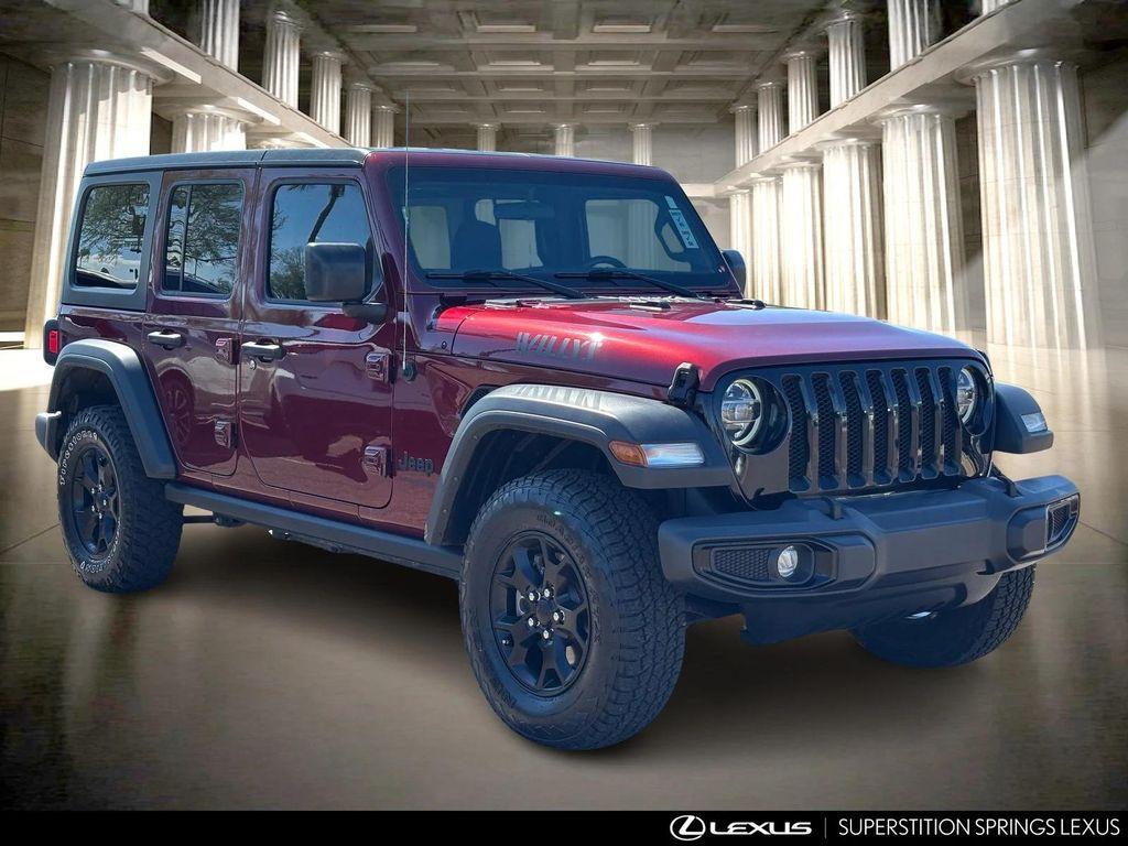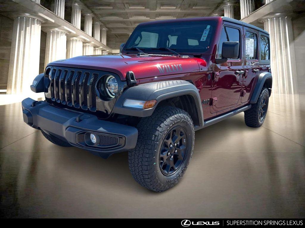One Owner, Clean Carfax, Wrangler Unlimited Willys, 3.0L V6 Turbodiesel, 8-Speed Automatic, 4WD, Snazzberry Pearlcoat, Black w/Cloth Low-Back Bucket Seats or Leather Trimmed Bucket Seats or Leather Trimmed Bucket Seats (KL) or Leather Trimmed Seats w/Sahara Logo, 4-Wheel Drive Swing Gate Decal, 7.0' Touchscreen Display, Air Conditioning w/Auto Temperature Control, Air Filtering, Anti-Spin Differential Rear Axle, Apple CarPlay, Automatic Headlamps, Black 3-Piece Hard Top, Black Grille, Black Trail Rated Badge, Cluster 7.0' TFT Color Display, Deep Tint Sunscreen Windows, Freedom Panel Storage Bag, Front 1-Touch Down Power Windows, Google Android Auto, GPS Antenna Input, Gray EcoDiesel Badge, Integrated Center Stack Radio, Leather Wrapped Steering Wheel, LED Headlamp Fog Lamp Group, Matte Black Jeep Badge, Mold In Color Bumper w/Gloss Black, MOPAR All-Weather Floor Mats (DISC), No Soft Top, Power Heated Mirrors, Quick Order Package 26W Willys (DISC), Radio: Uconnect 4 w/7' Display, Rear Window Defroster, Rear Window Wiper/Washer, Remote Keyless Entry, Security Alarm, SiriusXM Satellite Radio, Speed Sensitive Power Locks, Sun Visors w/Illuminated Vanity Mirrors, Technology Group, USB Host Flip, Wheels: 17' x 7.5' Moab Black Aluminum, Willys, Willys Hood Decal, Wrangler Decal. CARFAX One-Owner. Clean CARFAX. Odometer is 13297 miles below market average! 2021 Snazzberry Pearlcoat Jeep Wrangler Unlimited Willys 4D Sport Utility Superstition Springs Lexus great selection of new, used vehicles and financing options. Proudly serving the following communities Mesa, Phoenix, Scottsdale, and Tempe.