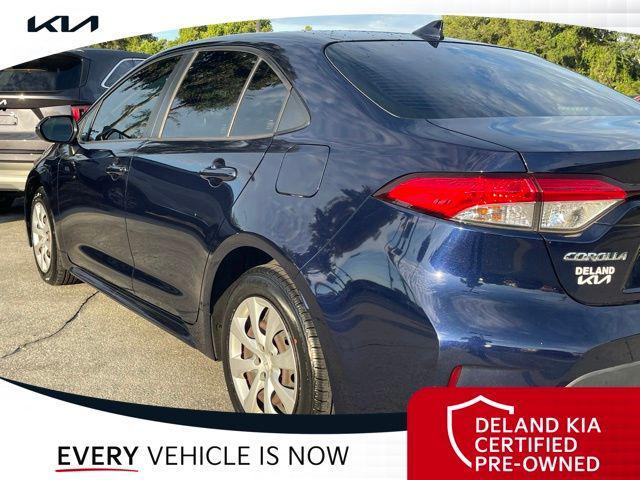 Recent Arrival! CARFAX One-Owner. Black 2021 Toyota Corolla LE0 MONEY DOWN AVAILABLE***, LIFETIME OIL CHANGES, CARFAX ACCIDENT FREE, Florida Driven, Backup Camera, Apple CarPlay/Android Auto, Auto High-beam Headlights, Automatic temperature control, Remote keyless entry, Steering wheel mounted audio controls.Black Cloth interior.30/38 City/Highway MPGDeland Kia, We're Closer Than You Think!!!! Se habla Espanol!!Equipped with Apple CarPlay/Android Auto, Auto High-beam Headlights, Automatic temperature control, Remote keyless entry, Steering wheel mounted audio controls, 4-Wheel Disc Brakes, 6 Speakers, ABS brakes, Air Conditioning, AM/FM radio: SiriusXM, Brake assist, Bumpers: body-color, Delay-off headlights, Driver door bin, Driver vanity mirror, Dual front impact airbags, Dual front side impact airbags, Electronic Stability Control, Emergency communication system: Safety Connect with 1-year trial, Exterior Parking Camera Rear, Four wheel independent suspension, Front anti-roll bar, Front Bucket Seats, Front Center Armrest, Front reading lights, Fully automatic headlights, Illuminated entry, Knee airbag, Low tire pressure warning, Occupant sensing airbag, Outside temperature display, Overhead airbag, Panic alarm, Passenger door bin, Passenger vanity mirror, Power door mirrors, Power steering, Power windows, Premium Fabric Seat Trim, Radio data system, Radio: Audio, Rear anti-roll bar, Rear seat center armrest, Rear side impact airbag, Rear window defroster, Security system, Speed control, Split folding rear seat, Tachometer, Telescoping steering wheel, Tilt steering wheel, Traction control, Trip computer, Variably intermittent wipers, and Wheels: 16'' Wide Vent Steel.