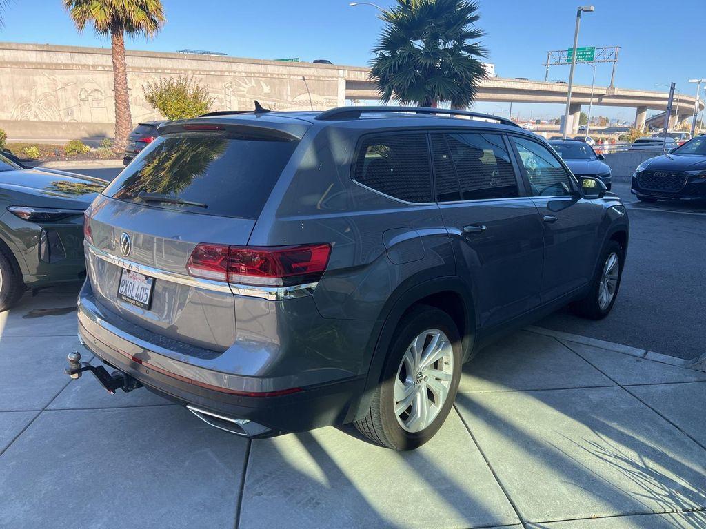 Volkswagen Marin is delighted to showcase this Pre-Owned 2021 Volkswagen Atlas V6 SE w/ Technology, finished in a sleek Platinum Gray Metallic exterior paired with a premium Mauro Brown Leatherette interior. This versatile midsize SUV blends refined styling, modern technology, and everyday practicalityand it includes two key fobs for added convenience. Equipped with the 2nd-Row Dual Captains Chairs Package, this Atlas provides enhanced passenger comfort and easier access to the third row. Youll also find the Towing Package with a factory-installed trailer hitch offering a towing capacity of up to 5,000 lbs, making it ideal for adventurous getaways and family road trips. This Atlas is further enhanced with practical accessories including Monster Mats, Heavy Duty Trunk Liner with CarGo Blocks, a Privacy Cover for the cargo area, and First Aid & Roadside Assistance Kits. Convenience features like remote engine start, keyless access with push-button start, and a hands-free Easy Open power liftgate make every journey easier. Engine and Performance: Under the hood, this Atlas is powered by a robust 3.6L 24-valve DOHC V6 engine that produces 276 horsepower and 266 lb-ft of torque, paired with an 8-speed automatic transmission with Tiptronic. The front-wheel-drive system and four-wheel independent suspension provide confident, smooth handling for daily drives and long-distance cruising. Key Features: 2nd-Row Dual Captains Chairs Package: Comfort-focused seating with easy third-row access. Towing Package: Factory-installed hitch with up to 5,000 lbs towing capacity. Monster Mats & Trunk Liner with CarGo Blocks: All-weather protection and cargo organization. Climatronic Three-Zone Climate Control: Individual comfort for all three rows. App-Connect with Wireless & USB Smartphone Integration: Seamless connectivity on the go. Safety Features: Includes Adaptive Cruise Control, Blind Spot Monitor, Rear Traffic Alert, Park Distance Control, and more. This 2021 Volkswagen Atlas V6 SE w/ Technology is the ultimate family-ready SUVoffering the perfect balance of space, safety, and sophistication. Volkswagen Marin is a member of the indiGO Auto Group. Our dealership features a beautiful VW Corporate Identity showroom, fully staffed factory certified service center, parts department, finance department, detail department, and Volkswagen accessories boutique. Allow us to also help arrange transportation of your new car directly to your home anywhere in the world. Trade-in proposals are always welcome. If you like this vehicle and have questions, simply call, email, or drop by our location at 720 Francisco Blvd W, San Rafael, CA 94901.?We invite you to Activate Your Ownership with us today!