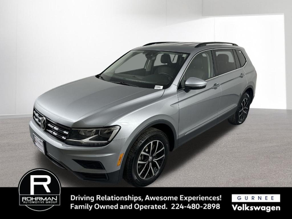 CARFAX One-Owner. Clean CARFAX. Certified. Odometer is 2652 miles below market average! 2021 Tiguan 2.0T SE 2.0L TSI DOHC Pyrite Silver Metallic **ALL WHEEL DRIVE**, **LEATHER SEATS**, **PUSH BUTTON START**, **KEYLESS ENTRY**, **BACKUP CAMERA**, **BLUETOOTH**, **BLIND SPOT MONITOR**, **APPLE CARPLAY/ANDROID AUTO**, **ADAPTIVE CRUISE CONTROL**, PORTABLE AUDIO CONNECTION/MP3, 2-Row Rubber Monster Mats w/Logo Kit (Set of 4), 2-Row Tiguan MDO Package, Cargo Area Retractable Privacy Cover, Frameless Auto-Dimming Rearview Mirror, Heavy Duty Trunk Liner w/VW CarGo Blocks. With options like 2-Row Tiguan MDO Package (2-Row Rubber Monster Mats w/Logo Kit (Set of 4), Cargo Area Retractable Privacy Cover, Frameless Auto-Dimming Rearview Mirror, and Heavy Duty Trunk Liner w/VW CarGo Blocks), 3.33 Axle Ratio, 4-Wheel Disc Brakes, 4-Wheel Independent Suspension, 6 Speakers, ABS brakes, Air Conditioning, Alloy wheels, AM/FM radio: SiriusXM with 360L, Automatic temperature control, Brake assist, Bumpers: body-color, Compass, Delay-off headlights, Driver door bin, Driver vanity mirror, Dual front impact airbags, Dual front side impact airbags, Electronic Stability Control, Emergency communication system: VW Car-Net services (capabilities require enrollment or subscription), Exterior Parking Camera Rear, Forward collision: FCW w/Autonomous Emergency Braking mitigation, Four wheel independent suspension, Front anti-roll bar, Front Bucket Seats, Front Center Armrest, Front dual zone A/C, Front reading lights, Fully automatic headlights, Heated door mirrors, Heated Front Comfort Seats, Heated front seats, Illuminated entry, Leather Shift Knob, Low tire pressure warning, Occupant sensing airbag, Outside temperature display, Overhead airbag, Overhead console, Panic alarm, Passenger door bin, Passenger vanity mirror, Perforated V-Tex Leatherette Seating Surfaces, Power door mirrors, Power driver seat, Power steering, Power windows, Radio data system, Radio: MIB3 Composition Media AM/FM/HD, Rear anti-roll bar, Rear reading lights, Rear seat center armrest, Rear window defroster, Rear window wiper, Remote keyless entry, Roof rack: rails only, Security system, Speed control, Speed-sensing steering, Split folding rear seat, Spoiler, Steering wheel mounted audio controls, Tachometer, Telescoping steering wheel, Tilt steering wheel, Traction control, Trip computer, Turn signal indicator mirrors, Variably intermittent wipers, and Wheels: 17 2-Tone Machined & Black Alloy. Volkswagen Certified Pre-Owned Details: * Roadside Assistance * Model Year 2020 and Newer Vehicles: 2-Year or 24,000-Mile (whichever occurs first) Comprehensive Limited Warranty. Model Year 2019 Vehicles: 1-Year or 12,000-Mile (whichever comes first) Comprehensive Limited Warranty. Electric Vehicles Model Year 2019 & Newer: 3-Year or 36,000-Mile (whichever comes first) Comprehensive Limited Warranty. 2 Years of 24-Hour Roadside Assistance, Three Months of SiriusXM Platinum Plan Trial Subscription. * 10