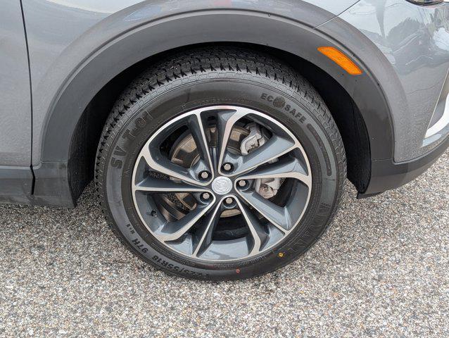 Satin Steel Gray Metallic 2022 Buick Encore GX Select FWD CVT ECOTEC 1.3L TurboHands-Free Power Liftgate Package (Hands Free Power Liftgate), Preferred Equipment Group 1SD (Heated Driver & Front Passenger Seats), 18' Machined Aluminum Wheels, 2 USB Ports w/Auxiliary Input Jack, 2-Way Power Driver Lumbar Control, 4-Way Manual Passenger Seat Adjuster, 4-Wheel Disc Brakes, 5.45 Final Drive Axle Ratio, 6 Speakers, 8-Way Power Driver Seat Adjuster, ABS brakes, Air Conditioning, All-Weather Floor Liners (LPO), Alloy wheels, AM/FM radio: SiriusXM, Auto High-beam Headlights, Automatic temperature control, Brake assist, Bumpers: body-color, Cloth w/Leatherette Seat Trim, Compass, Delay-off headlights, Driver door bin, Driver vanity mirror, Dual front impact airbags, Dual front side impact airbags, Electric Auxiliary Heating/Defroster, Electronic Stability Control, Emergency communication system: OnStar and Buick connected services capable, Enhanced Performance 6-Speaker System, Front anti-roll bar, Front Bucket Seats, Front Center Armrest, Front dual zone A/C, Front fog lights, Front reading lights, Front wheel independent suspension, Fully automatic headlights, Heated door mirrors, Heated front seats, Illuminated entry, Knee airbag, Low tire pressure warning, Occupant sensing airbag, Outside temperature display, Overhead airbag, Overhead console, Panic alarm, Passenger door bin, Passenger vanity mirror, Power door mirrors, Power driver seat, Power steering, Power windows, Radio data system, Radio: 8' Diagonal Buick Infotainment System, Rear reading lights, Rear seat center armrest, Rear side impact airbag, Rear window defroster, Rear window wiper, Remote keyless entry, Ride & Handling Suspension, Security system, SiriusXM Radio, Speed control, Speed-sensing steering, Split folding rear seat, Spoiler, Steering wheel mounted audio controls, Tachometer, Telescoping steering wheel, Tilt steering wheel, Traction control, Trip computer, Variably intermittent wipers, and Wireless Apple CarPlay/Wireless Android Auto. 29/32 City/Highway MPGAwards:* 2022 IIHS Top Safety Pick with specific headlights