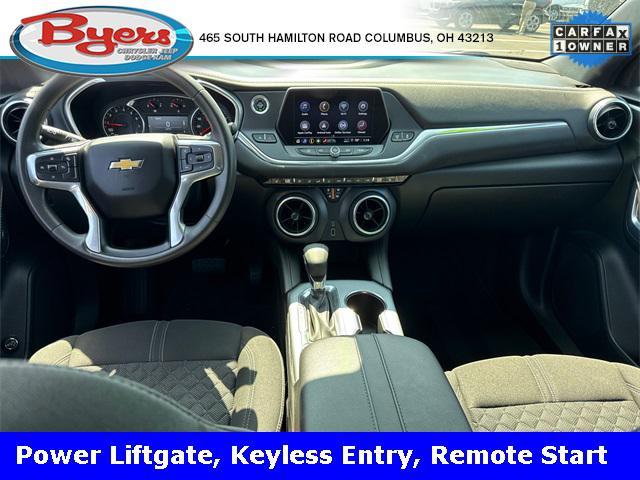 2022 Black Chevrolet Blazer LT 2.0L Turbocharged FWD 9-Speed Automatic with Overdrive This Chevrolet Blazer has many features and is well equipped including, 4-Wheel Disc Brakes, 6 Speakers, ABS brakes, Air Conditioning, Alloy wheels, AM/FM radio: SiriusXM, Apple CarPlay/Android Auto, Automatic temperature control, Black Roof Rails, Brake assist, Convenience & Driver Confidence Package, Electronic Stability Control, Exterior Parking Camera Rear, Front Bucket Seats, Front Center Armrest, Front dual zone A/C, Fully automatic headlights, Heated door mirrors, Heated Driver & Front Passenger Seats, High-Intensity Discharge Headlights, Inside Rear-View Auto-Dimming Mirror, Lane Change Alert w/Side Blind Zone Alert, Outside Heated Power-Adjustable Body-Color Mirrors, Power door mirrors, Power driver seat, Power windows, Preferred Equipment Group 2LT, Rear Cross Traffic Alert, Rear Park Assist w/Audible Warning, Rear Power Programmable Liftgate, Rear window defroster, Rear window wiper, Remote keyless entry, Remote Start, Security system, Speed control, Split folding rear seat, Steering wheel mounted audio controls, Telescoping steering wheel, Tilt steering wheel, Traction control, Universal Home Remote, Variably intermittent wipers.CARFAX One-Owner. Clean CARFAX. Priced below KBB Fair Purchase Price! Odometer is 11680 miles below market average! 22/29 City/Highway MPG