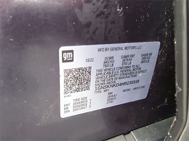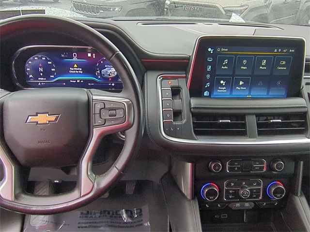 CARFAX One-Owner. 2022 Chevrolet Tahoe LT 10-Speed Automatic with Overdrive EcoTec3 5.3L V8 4WD Fuel Economy: 15/20 City/Highway MPG Vehicle serviced Brake fluid checked Brake fluid flushed/changed Cabin air filter replaced/cleaned Differential fluid flushed/changed Fluids checked Front differential fluid flushed/changed Oil and filter changed Rear differential serviced Tires rotated Transfer case fluid flushed/changed Transfer case serviced Wiper(s) replaced **4 WHEEL DRIVE**, **BLIND SPOT SENSORS**, **BACKUP CAMERA**, **APPLE CARPLAY/ANDROID AUTO**, **APPLE CARPLAY**, **HANDS FREE BLUETOOTH**, **STEERING WHEEL CONTROLS**, WIRELESS APPLE CAR PLAY, AUTOMATIC EMERGENCY BRAKING, REMOTE START, FRONT PEDESTRIAN BRAKING, FORWARD COLLISION ALERT, LANE DEPARTURE WARNING, LANE KEEPING ASSIST, 1st & 2nd Row Color-Keyed Carpeted Floor Mats, Auto-Dimming Inside Rear-View Mirror, Automatic Stop/Start, Automatic temperature control, Bose 9-Speaker Stereo Audio System Feature, Bright Front & Rear Door Sill Plates, Color-Keyed Carpeting Floor Covering, Driver & Front Outboard Passenger Airbags, Enhanced Driver Information Center, Floor Console w/Storage Area, Front dual zone A/C, Hands-Free Rear Power Programmable Liftgate, Infotainment Display, Leather-Wrapped Steering Wheel, LED Daytime Running Lamps, Memory seat, Memory Settings for Driver, Navigation System, Preferred Equipment Group 1LT, Premium audio system: Chevrolet Infotainment System 3, Remote keyless entry, Remote Start, SiriusXM Radio w/360L, Start/Stop System Disable Button, Universal Home Remote, Wireless Charging. *Your additional costs are tax, tag, title, registration, and electronic filing fees, and any other applicable state-imposed fees for the state in which the vehicle will be registered, any dealer-installed options (if applicable) and a dealer processing fee ($800 Maryland; not required by law); ($477 Pennsylvania); ($800 Delaware). Prices are subject to change, and prior sales are excluded from these offers. While every reasonable effort is made to ensure the accuracy of this information, we are not responsible for any errors or omissions contained on these pages. Please verify any information in question with the dealer.