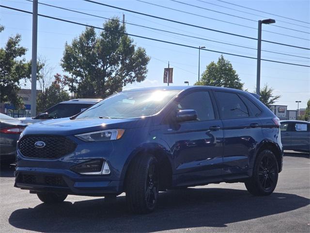 Clean CARFAX. CARFAX One-Owner. 2022 Ford Edge ST Line 4D Sport UtilityRecent Arrival! Atlas Blue Metallic Edge ST Line, 4D Sport Utility, EcoBoost 2.0L I4 GTDi DOHC Turbocharged VCT, 8-Speed Automatic, AWD, Atlas Blue Metallic, Ebony w/ActiveX Seating Material Heated Bucket Seats, 6 Speakers, Air Conditioning, AM/FM radio: SiriusXM with 360L, Auto High-beam Headlights, Automatic temperature control, Brake assist, Delay-off headlights, Electronic Stability Control, Equipment Group 250A, Front dual zone A/C, Front fog lights, Fully automatic headlights, Heated door mirrors, Heated front seats, Illuminated entry, Power door mirrors, Power driver seat, Power Liftgate, Power passenger seat, Power steering, Power windows, Rear Parking Sensors, Rear window defroster, Remote keyless entry, Steering wheel mounted audio controls, SYNC 4A w/Enhanced Voice Recognition, Wheels: 20'' Premium Gloss Black-Painted Aluminum. AWD 8-Speed Automatic EcoBoost 2.0L I4 GTDi DOHC Turbocharged VCTOdometer is 20974 miles below market average! 21/28 City/Highway MPG