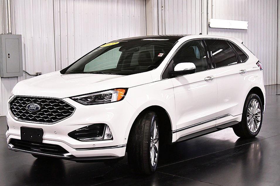 *TITANIUM*, *ALL WHEEL DRIVE*, *TRAILER TOW*, *TITANIUM ELITE*, *NAVIGATION*, *TRAILER TOW*, *MOONROOF*, *CLEAN / ONE OWNER CARFAX*, 20'' Polished Aluminum Wheels, 3D Diamond Front Console Surface Area, 3D Diamond Instrument Panel Appliques, Adaptive Cruise Control w/Stop & Go, Adaptive LED Headlamps, Auto-Dimming Driver's Sideview Mirror, Bright Chrome Accents & Surround Upper Grille, Cargo Accessory Package, Cargo Mat, Class II Trailer Tow Package, Connected Built-In Navigation, Enhanced Active Park Assist, Equipment Group 301A, Evasive Steering Assist, Front 180-Degree Camera w/Split View, Heated Rear Seats, Lane Centering, Leather-Trimmed Heated/Cooled Sport Bucket Seats, Navigation System, Panoramic Vista Roof, Power Tilt/Telescoping Steering Column w/Memory, Rear Bumper Protector, Retractable Cargo Area Cover, Titanium Elite Package.New Price!CARFAX One-Owner. Clean CARFAX. Star White Metallic Tri-Coat 2022 Ford Edge Titanium AWD 8-Speed Automatic This 2022 Ford Edge Titanium in Star White Metallic Tri-Coat features:21/28 City/Highway MPG