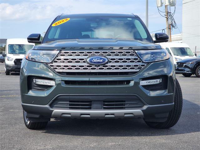 Clean CARFAX. 2022 Ford Explorer Limited 4D Sport UtilityForged Green Metallic Explorer Limited, 2.3L EcoBoost I-4, 10-Speed Automatic, 4WD, Forged Green Metallic, Ebony w/Leather Heated/Ventilated Captain's Chairs, 110V/150W AC Power Outlet, 12 Speakers, 20'' Premium Painted Aluminum Wheels, 3rd Row PowerFold Seat, ABS brakes, Auto High-beam Headlights, Electronic Stability Control, Equipment Group 301A, FordPass Connect, Hands-Free Foot-Activated Liftgate, Limited Convenience Package, Memory Driver's Seat, Power Liftgate, Power Tilt/Telescoping Steering Column, Radio: B&O Sound System by Bang & Olufsen, Rear air conditioning, Sideview Mirrors w/Gloss Black Caps, SYNC 3 Communications & Entertainment System, Twin Panel Moonroof, Voice-Activated Touchscreen Navigation System. 4WD 10-Speed Automatic 2.3L EcoBoost I-420/27 City/Highway MPG