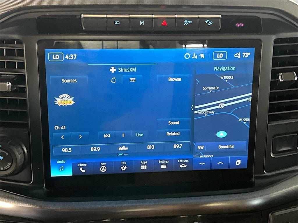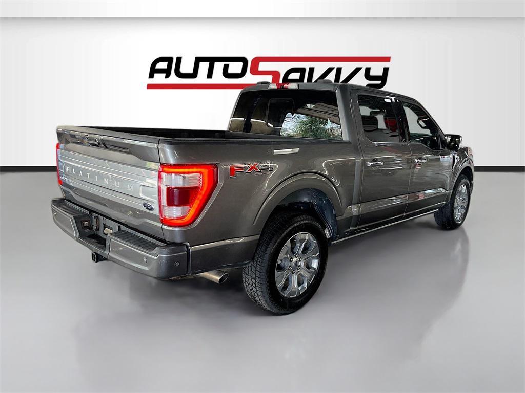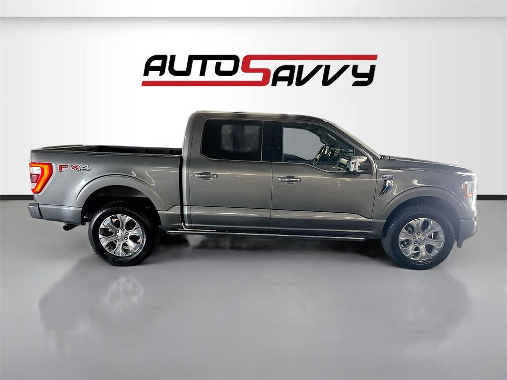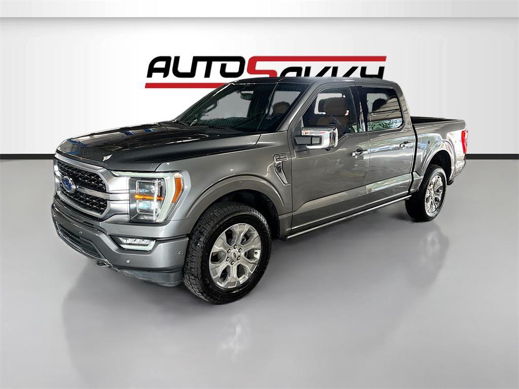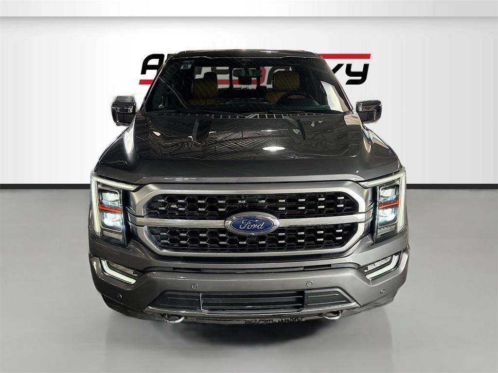 Experience the power and luxury of the 2022 Ford F-150 Platinum 4WD SuperCrew, available at AutoSavvy Woods Cross. This stunning Carbonized Gray Metallic truck is built for performance with a formidable 5.0L V-8 engine boasting 400 horsepower, paired with a 10-speed automatic transmission. With only 31,168 miles, this F-150 combines low mileage with high capability, ensuring a robust driving experience whether on or off-road. Enjoy the premium comfort of black leather front seat upholstery, heated and cooled front seats, and a heated steering wheel. Stay connected with the SYNC 4 system featuring Apple CarPlay and Android Auto, and savor the rich sound from the B&O Unleashed Sound System by Bang & Olufsen. The current status of the title is branded, reflecting AutoSavvy's commitment to transparency and quality. This 2022 Ford F-150 is Savvy Certified, having undergone a thorough inspection to meet high safety and performance standards. Enjoy peace of mind with our 4-month/4,500-mile warranty, covering essential components for added security. Visit AutoSavvy Woods Cross today to explore the exceptional capabilities of the Ford F-150 and join our community of satisfied customers who trust us for high-quality vehicles that seamlessly blend outstanding features with reliability. Discover why this F-150 is the perfect choice for those seeking a powerful, well-equipped, and stylish truck.