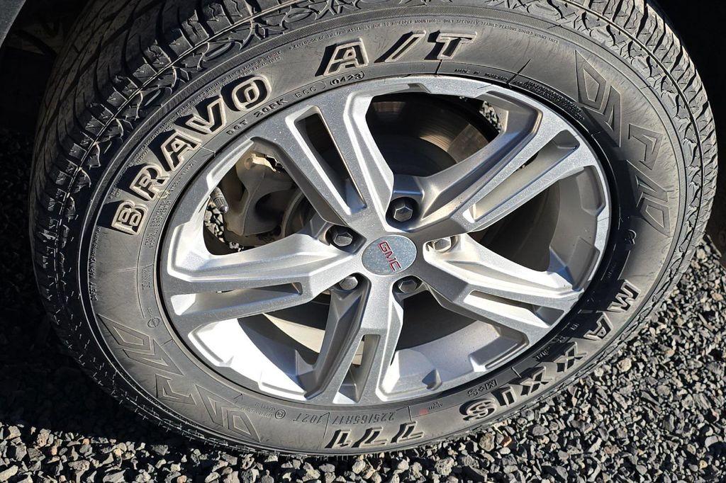 2 USB Data Ports w/Auxiliary Input Jack, 3.47 Axle Ratio, 4-Way Manual Driver's Seat, 4-Way Manual Front Passenger Seat, 4-Wheel Disc Brakes, 4.2'' Multi-Color Driver Information Screen, 6 Speakers, 6-Speaker Audio System Feature, 8-Way Power Driver Seat Adjuster, ABS brakes, Air Conditioning, Alloy wheels, AM/FM radio: SiriusXM, Auto High-beam Headlights, Auto-dimming Rear-View mirror, Automatic temperature control, Bluetooth® For Phone, Brake assist, Bumpers: body-color, Compass, Delay-off headlights, Driver & Front Passenger Heated Seats, Driver Convenience Package, Driver door bin, Driver vanity mirror, Dual front impact airbags, Dual front side impact airbags, Dual-Zone Automatic Climate Control, Electronic Stability Control, Emergency communication system: OnStar Guidance, Floor Liner Package (LPO), Four wheel independent suspension, Front & Rear All-Weather Floor Liners (LPO), Front anti-roll bar, Front Bucket Seats, Front Center Armrest, Front reading lights, Fully automatic headlights, Heated door mirrors, Illuminated entry, Integrated Cargo Liner (LPO), Lane Departure Warning System, License Plate Front Mounting Package, Low tire pressure warning, Not Equipped w/Driver & Fr Pass Heated Seats, Occupant sensing airbag, Outside temperature display, Overhead airbag, Overhead console, Panic alarm, Passenger door bin, Passenger vanity mirror, Power door mirrors, Power Driver Lumbar Control, Power Programmable Rear Liftgate, Power steering, Power windows, Preferred Equipment Group 3SA, Premium Cloth Seat Trim, Radio data system, Radio: GMC Infotainment Audio System w/7'' Display, Rear anti-roll bar, Rear seat center armrest, Rear window defroster, Rear window wiper, Remote keyless entry, Remote Start, Roof-Mounted Luggage Rack Side Rails, Security system, SiriusXM Radio, Speed control, Speed-sensing steering, Split folding rear seat, Spoiler, Steering wheel mounted audio controls, Tachometer, Telescoping steering wheel, Tilt steering wheel, Traction control, Trip computer, Variably intermittent wipers, Wheels: 17'' x 7'' Silver Painted Aluminum, Wireless Apple CarPlay/Wireless Android Auto. 25/28 City/Highway MPG Marine Metallic 1.5L DOHC 9-Speed Automatic AWD