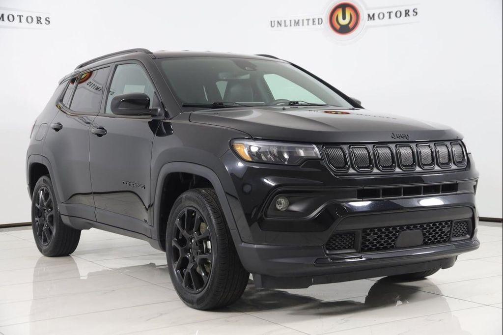 4x4, AWD, Back Up Camera, Bluetooth, Heated Seats, Push Button Start, and much more ..., Touch Screen, Compass Altitude, 4D Sport Utility, 2.4L I4, 9-Speed 948TE Automatic, 4WD, Diamond Black Crystal Pearlcoat, Black Cloth, 115V Auxiliary Power Outlet, 2nd Row USB Type A/C Charge Only, Air Conditioning ATC w/Dual Zone Control, All-Season Floor Mats, Altitude Special Edition, Auto-Dimming Rear-View Mirror, Black Day Light Opening Moldings, Black Headliner, Black Roof, Bright Exhaust Tip, Convenience Group, Foot Activated Open 'N Go Liftgate, Gloss Black Badges, Gloss Black Grille & Crosshairs, Gloss Black Lower Rear Fascia Valance, Heated Front Seats, Heated Steering Wheel, Humidity Sensor, Leather Wrapped Steering Wheel, Light Tungsten Interior Accent Stitching, Piano Black Interior Accents, Power Adjust 8-Way Driver Seat, Power Liftgate, Quick Order Package 2GB Altitude, Remote Start System, Reversible Carpet/Vinyl Cargo Mat, Security Alarm, Universal Garage Door Opener, Vehicle Information Center, Wheels: 18'' x 7'' Gloss Black Painted Aluminum, Windshield Wiper De-Icer. Odometer is 8005 miles below market average!2022 Jeep Compass Altitude 4D Sport Utility 9-Speed 948TE Automatic 2.4L I4CARFAX One-Owner. Clean CARFAX. 22/30 City/Highway MPGVisit our website www.iumotors.com to view 100s of newer vehicles, more pictures and info, or to apply for financing. Rates are incredibly low for approved credit. We offer extended warranties, protection packages, and insurance. We assure you the best experience at any of our 4 locations and unbeatable prices and quality. At Unlimited Motors we believe in ''MARKET VALUE PRICING. We use real-time Internet price comparisons to constantly adjust prices to provide ALL BUYERS The BEST PRICE possible. We do not mark them up, to mark them down! Our entire team is committed to helping you buy a car the way we would want to buy a car! We utilize state-of-the-art technology to constantly monitor pricing trends to offer our shoppers the best competitive pricing, value, and experience. We sell and service all makes and models of Pre-owned / Used Vehicles Used Cars, Used Trucks, Used Sport Utility, Lamborghini, Ferrari, Bentley, Rolls Royce, McLaren, Maserati, Ford, Chevrolet/Chevy, Honda, Toyota, Porsche, Land Rover, Jaguar, INFINITI, Audi, Nissan, Mazda, Hyundai, Chrysler, Jeep, Dodge, Ram, SRT, Mitsubishi, Lexus, Kia, Volkswagen, Mini, BMW, Mercedes, Fiat, Volvo, GMC, Cadillac, Lincoln as well as other brands. Proudly serving these areas of Indianapolis, Fishers, Carmel, Noblesville, Greenwood, Avon, Plainfield, Zionsville, & Brownsburg, Indiana, Midwest. We also serve the entire nation with our seamless and easy online purchasing process, and offer shipping nationwide.Advertised prices DO NOT include Sales Tax, Dealer Fees, Title Processing Charges, and Dealer Pre-installed Products.