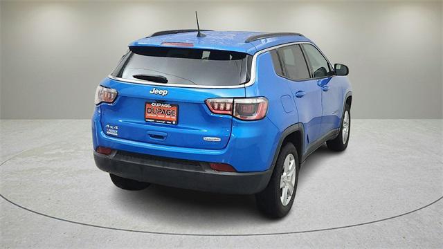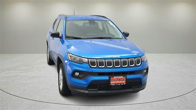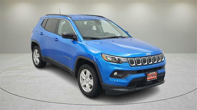 Vehicle location: DuPage Chrysler Dodge Jeep Ram 433 E NORTH AVE , GLENDALE HTS IL 60139.2022 Jeep Compass Latitude Laser Blue Pearlcoat 4WD 9-Speed 948TE Automatic 2.4L I4 4WD. Clean CARFAX.Odometer is 4271 miles below market average! 22/30 City/Highway MPGDuPage Chrysler Dodge Jeep Ram in Glendale Heights, IL is your official Chrysler Dodge Jeep Ram dealership near you serving Glendale Heights, Wheaton, Glen Ellyn, Lombard, Carol Stream, Villa Park, Addison, Bloomingdale, Schaumburg, Palatine, Downers Grove, Chicago, Elk Grove Village, Naperville, Elmhurst, Aurora, and West Chicago. We are your nearest Chrysler Dodge Jeep Ram dealer to finance or lease a JEEP WRANGLER, JEEP GRAND CHEROKEE, JEEP GLADIATOR, JEEP COMPASS, DODGE DURANGO, HORNET, RAM 1500, RAM 2500, CHRYSLER PACIFICA. We are also your nearest used car dealer for used trucks, used SUVs, used cars & used electric cars. We also have Certified Used Cars in stock. We service your Chrysler Dodge Jeep Ram and all vehicles providing oil change, repair, maintenance. We also serve customers in Minnesota in Rochester, Mankato, Winona, Wabasha, Red Wing, Owatonna, Austin, Albert Lea, Faribault, Zumbrota, St Charles, MN. WHY BUY FROM US? 5-Star Rated by Our Customers Easy Financing, Huge Pool of Lenders Car Washes Affordable Tire Programs Service Loaner Vehicles LARGE VEHICLE SELECTION - We have one of the largest used vehicle inventories in the Midwest with 6 locations and hundreds of vehicles for you to choose from. A senior staff with decades of experience to ensure we find the perfect vehicle to fit your needs.