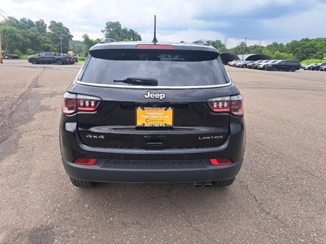 Diamond Black Crystal Pearlcoat 2022 Jeep Compass Limited 4WD 9-Speed 948TE Automatic 2.4L I4 4WD. Well Equipped with: Quick Order Package 2GG, FCA US LLC Certified Pre-Owned Certified, 4WD, 10.1 Touchscreen Display, 3.73 Axle Ratio, 4-Wheel Disc Brakes, 6 Speakers, ABS brakes, Air Conditioning, Alloy wheels, AM/FM radio: SiriusXM, Anti-whiplash front head restraints, Auto High-beam Headlights, Auto-dimming Rear-View mirror, Automatic temperature control, Brake assist, Bumpers: body-color, Compass, Delay-off headlights, Disassociated Touchscreen Display, Driver door bin, Driver vanity mirror, Dual front impact airbags, Dual front side impact airbags, Electronic Stability Control, Emergency communication system: SiriusXM Guardian, Four wheel independent suspension, Front anti-roll bar, Front Bucket Seats, Front Center Armrest w/Storage, Front dual zone A/C, Front fog lights, Front License Plate Bracket, Front reading lights, Fully automatic headlights, Global Telematics Box Module (TBM), Gloss Black Exterior Mirrors, Heated door mirrors, Heated front seats, Heated steering wheel, Illuminated entry, Knee airbag, Leather Shift Knob, Leather Trimmed Bucket Seats, Low tire pressure warning, Occupant sensing airbag, Outside temperature display, Overhead airbag, Overhead console, Panic alarm, ParkView Rear Back-Up Camera, Passenger door bin, Passenger vanity mirror, Power door mirrors, Power driver seat, Power steering, Power windows, Radio: Uconnect 5 w/10.1 Display, Rain sensing wipers, Rear anti-roll bar, Rear seat center armrest, Rear window defroster, Rear window wiper, Remote keyless entry, Roof rack: rails only, Security system, Speed control, Split folding rear seat, Spoiler, Steering wheel mounted audio controls, Tachometer, Telescoping steering wheel, Tilt steering wheel, Traction control, Trip computer, Turn signal indicator mirrors, Variably intermittent wipers, and Wheels: 18 x 7 Painted Diamond Cut Aluminum. Odometer is 4643 miles below market average! 22/30 City/Highway MPG FCA US LLC Certified Pre-Owned Details: * 125 Point Inspection * Vehicle History * Roadside Assistance * Limited Warranty: 3 Month/3,000 Mile (whichever comes first) after new car warranty expires or from certified purchase date * Powertrain Limited Warranty: 84 Month/100,000 Mile (whichever comes first) from original in-service date * Warranty Deductible: $100 * Vehicles Up to 75,000 Miles and/or 5 Model Years. 24-Hour Towing & Roadside Assistance, Car Rental Allowance, CARFAX® Vehicle History ReportTM and an Introductory 3-month Subscription to SiriusXM® Satellite Radio & Certified Warranty Upgrades * Transferable Warranty Matthews Chrysler Dodge Jeep Ram is located just 11 miles from Binghamton, NY over the border in Great Bend, Pennsylvania. Find us at Exit 230 off Route 81, then just a few hundred yards off route 171, behind the Kwik Fill Gas Station . Matthews Chrysler Dodge Jeep Ram is the largest dealership in Susquehanna County! We trans