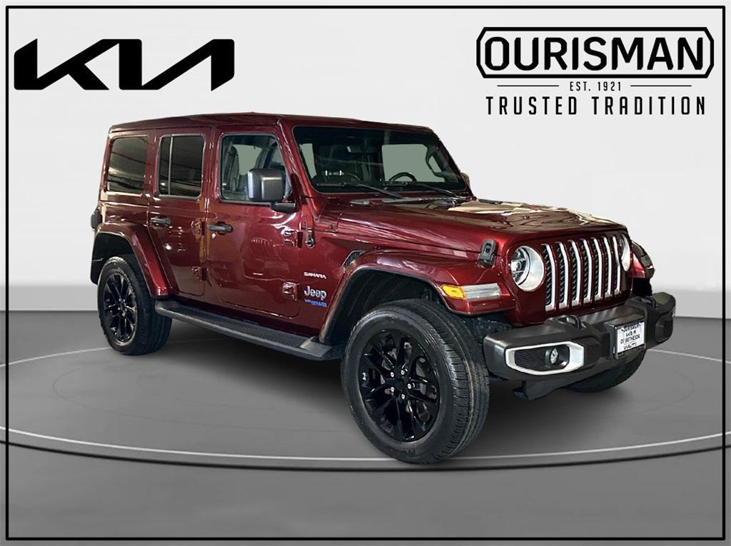 2022 Jeep Wrangler Unlimited Sahara 4xe CARFAX One-Owner. 4WD Black Clearcoat 2.0L I4 DOHC, ABS brakes, Alloy wheels, Compass, Electronic Stability Control, Front dual zone A/C, Heated door mirrors, Illuminated entry, Low tire pressure warning, Navigation System, ParkView Rear Back-Up Camera, Passenger door bin, Remote keyless entry, Traction control. We know you have done a great deal of research and you don't have time for hours of back and forth negotiations. At Ourisman Kia, your hassle free purchase is backed by our extensive Market Research. Our No-Haggle pricing ensures you the best value on your vehicle-no games, no gimmicks. Unlike our competitors, we don't add any additional fees to the posted price for freight. You pay only the posted price of the vehicle plus Sales tax, your registration and a MD processing charge of $800. Some pricing requires you to finance with Kia, please contact the dealer for details. Come see why Ourisman Kia offers you the best value for your money!