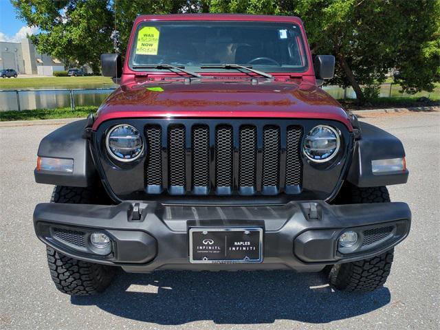 Clean CARFAX.2022 Jeep Wrangler Unlimited WillysSnazzberry Pearlcoat4WD 2.0L I4 DOHC 8-Speed Automatic2-Door Passive Entry, Front Door Locks, 4-Wheel Drive Swing Gate Decal, 97 MPH Vehicle Max Speed Calibration, Air Conditioning w/Auto Temperature Control, Air Filtering, Anti-Spin Differential Rear Axle, Automatic Headlamps, Black Grille, Black Trail Rated Badge, Cluster 7.0'' TFT Color Display, Convenience Group, Deep Tint Sunscreen Windows, Front 1-Touch Down Power Windows, Front LED Fog Lamps, Leather Wrapped Steering Wheel, LED Headlamp & Fog Lamp Group, LED Premium Reflector Headlamps, Matte Black Jeep Badge, Mold In Color Bumper w/Gloss Black, MOPAR All-Weather Floor Mats, Power Heated Mirrors, Quick Order Package 22W Willys, Remote Keyless Entry, Security Alarm, SiriusXM Radio Service, SiriusXM Satellite Radio, Speed Sensitive Power Locks, Sun Visors w/Illuminated Vanity Mirrors, Technology Group, Universal Garage Door Opener, Wheels: 17'' x 7.5'' Moab Black Aluminum, Willys, Willys Hood Decal.Purchase your next vehicle with confidence and see how Naples INFINITI is delivering the car, and the experience. Stop by at 5880 Naples Blvd, Naples, Florida 34109.Everglades City Marco Island Naples Bonita Springs Cape Coral Estero Fort Myers Fort Myers Beach Sanibel Punta Gorda Longboat Key North Port Sarasota Venice Anna Maria Island Bradenton Holmes Beach Longboat Key Palmetto Plant City Tampa Temple Terrace Coconut Creek Coral Springs Dania Beach Davie Deerfield Beach Fort Lauderdale Hallandale Beach Hollywood Lauderhill Lighthouse Point Margate Miramar Oakland Park Pembroke Pines Plantation Pompano Beach Tamarac Weston Wilton Manors Boca Raton Boynton Beach Delray Beach Greenacres Highland Beach Hypoluxo Juno Beach Jupiter Lake Park Lake Worth Lantana Ocean Ridge Palm Beach Palm Beach Gardens Royal Palm Beach Wellington West Palm Beach Aventura Bal Harbour Bay Harbor Islands Coral Gables Hialeah Hialeah Gardens Homestead Key Biscayne Miami Miami Beach North Miami North Miami Beach Pinecrest Surfside Clearwater Dunedin Gulfport Largo Oldsmar Pinellas Park St. Pete Beach St. Petersburg Safety Harbor Tarpon Springs Treasure Island.