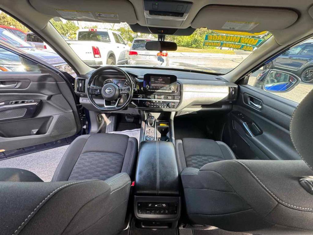 Drive our rugged One Owner 2022 Nissan Pathfinder SV 4WD in Deep Ocean Blue Pearl and discover a better route to adventure! Powered by a 3.5 Liter V6 delivering 284hp connected to a 9 Speed Automatic transmission for top-notch towing strength. This All Wheel Drive SUV also provides a multi-mode terrain-management system to master tougher conditions, and it returns nearly 27mpg on the highway. Bold and brawny-looking, our Pathfinder is detailed by LED lighting, heated power mirrors, roof rails, roof rack, a rear spoiler, and eye-catching alloy wheels. Our SV cabin seats up to eight with plenty of room left over for your gear. You'll be traveling in comfort, too, with heated cloth front seats, versatile second and third rows, a leather-wrapped steering wheel, tri-zone automatic climate control, Intelligent Key access, pushbutton ignition, and remote start. Keeping connected is impressively easy with an 8-inch touchscreen, Android Auto®/Apple CarPlay®, Bluetooth®, and a six-speaker sound system. Finding your path forward is a breeze with technology like that! Nissan knows you demand smart safety as well, so driver-assistance features include a backup camera, automatic emergency braking, adaptive cruise control, a blind-spot monitor, lane-keeping assistance, and even ProPILOT Assist for hands-on semi-autonomous driving. With all that and more, our Pathfinder SV was made to maximize family fun! Save this Page and Call for Availability. We Know You Will Enjoy Your North End Motor Sales Test Drive Towards Ownership!. Doc Fee only $143 Includes Mass Inspection No Other Hidden Fees.