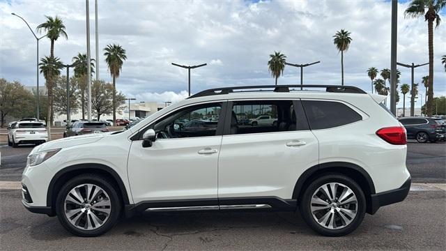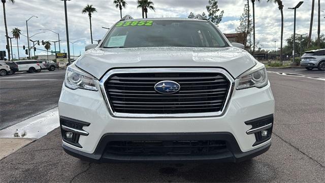 20/26 City/Highway MPG White 2022 Subaru Ascent Limited AWD Lineartronic CVT 2.4L 4-Cylinder DOHC 16V This Subaru Ascent is equipped with 3rd row seats: bench, 4-Wheel Disc Brakes, 6 Speakers, ABS brakes, Air Conditioning, Alloy wheels, AM/FM radio: SiriusXM, Auto High-beam Headlights, Auto-dimming Rear-View mirror, Automatic temperature control, Axle Ratio: 4.44, Brake assist, Bumpers: body-color, CD player, Compass, Delay-off headlights, Driver door bin, Driver vanity mirror, Dual front impact airbags, Dual front side impact airbags, Electronic Stability Control, Emergency communication system: STARLINK Safety and Security (Subscription Required), Exterior Parking Camera Rear, Four wheel independent suspension, Front anti-roll bar, Front Bucket Seats, Front Center Armrest, Front dual zone A/C, Front fog lights, Front reading lights, Fully automatic headlights, Garage door transmitter: HomeLink, Heated door mirrors, Heated Front Bucket Seats, Heated front seats, Heated rear seats, Heated steering wheel, Illuminated entry, Knee airbag, Low tire pressure warning, Memory seat, Occupant sensing airbag, Outside temperature display, Overhead airbag, Overhead console, Panic alarm, Passenger door bin, Passenger vanity mirror, Perforated Leather-Trimmed Upholstery, Power door mirrors, Power driver seat, Power Liftgate, Power passenger seat, Power steering, Power windows, Radio data system, Radio: Subaru STARLINK 8.0 Multimedia Plus System, Rear air conditioning, Rear anti-roll bar, Rear reading lights, Rear window defroster, Rear window wiper, Reclining 3rd row seat, Remote keyless entry, Security system, Speed control, Split folding rear seat, Spoiler, STARLINK/Apple CarPlay/Android Auto, Steering wheel mounted audio controls, Tachometer, Telescoping steering wheel, Tilt steering wheel, Traction control, Trip computer, Turn signal indicator mirrors, Variably intermittent wipers, and Wheels: 20 x 7.5 J Dk Gray Alloy w/Machine Finish. Odometer is 15002 miles below market average! Established in 1984, Fiesta Lincoln has been providing Mesa, AZ drivers with the outstanding customer service they deserve. Visit us today and see!