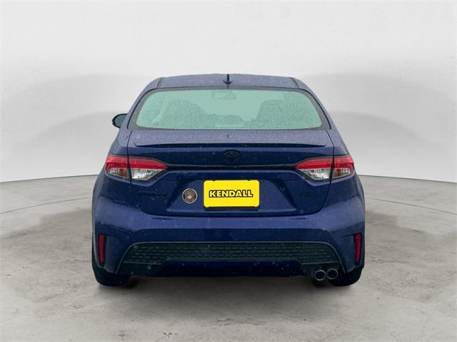 Blue Crush Metallic 2022 Toyota Corolla SE Nightshade FWD CVT 2.0L I4 DOHC 16V 4-Wheel Disc Brakes, 6 Speakers, ABS brakes, Air Conditioning, All-Weather Floor Liner Package (TMS), All-Weather Floor Liners, Alloy wheels, AM/FM radio: SiriusXM, Apple CarPlay/Android Auto, Auto High-beam Headlights, Automatic temperature control, Brake assist, Bumpers: body-color, Delay-off headlights, Driver door bin, Driver vanity mirror, Dual front impact airbags, Dual front side impact airbags, Electronic Stability Control, Emergency communication system: Safety Connect with 1-year trial, Exterior Parking Camera Rear, Four wheel independent suspension, Front anti-roll bar, Front Bucket Seats, Front Center Armrest, Front reading lights, Fully automatic headlights, Heated door mirrors, Illuminated entry, Knee airbag, Leather Shift Knob, Low tire pressure warning, Mudguards (TMS), Occupant sensing airbag, Outside temperature display, Overhead airbag, Panic alarm, Passenger door bin, Passenger vanity mirror, Power door mirrors, Power steering, Power windows, Preferred Owners Portfolio (TMS), Premium Fabric Seat Trim, Radio data system, Radio: Audio, Rear anti-roll bar, Rear seat center armrest, Rear side impact airbag, Rear window defroster, Remote keyless entry, Security system, Speed control, Split folding rear seat, Spoiler, Steering wheel mounted audio controls, Tachometer, Telescoping steering wheel, Tilt steering wheel, Traction control, Trip computer, Turn signal indicator mirrors, Variably intermittent wipers.31/40 City/Highway MPG