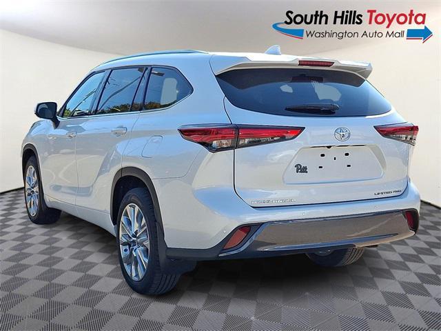 Recent Arrival! Certified. 2022 Toyota Highlander Toyota Safety Sense 2.5+, Pre-Collison System w/Automatic Braking, Lane Departure Alert w/Steering Assist, Blind Spot Monitor, Lane Tracing Assist, Road Sign Assist, Highlander Limited, 4D Sport Utility, 3.5L V6 DOHC, 8-Speed Automatic, AWD, Wind Chill Pearl, Black w/SofTex Seat Trim, 12.3'' Screen & Birds Eye View, Panoramic View Monitor, Radio: Premium Audio w/JBL Clari-Fi & 12.3'' Screen.CARFAX One-Owner. Clean CARFAX.We are a local family owned dealership with a goal to exceed your every expectation. From the first meeting through all of your vehicle service needs, South Hills Toyota will be here for you. At South Hills Toyota, Every pre-owned vehicle goes through extensive quality check with up to 160 individual inspection points. We offer upfront value pricing, free vehicle history reports, and multiple financing options. Contact us by email, phone, or in person to test drive your next vehicle today!20/27 City/Highway MPGToyota Gold Certified Details: * Warranty Deductible: $0 * Roadside Assistance * Vehicle History * 160 Point Inspection * Roadside Assistance for 7 Year / 100,000 Mile. Standard New-Car Financing Rates Available. Warranty honored at over 1,400 Toyota dealers in the continental U.S. & Canada. Trade-ins accepted. Trouble-free handling of your transaction, including DMV paperwork * Transferable Warranty * Powertrain Limited Warranty: 84 Month/100,000 Mile (whichever comes first) from TCUV purchase date * Limited Warranty: 12 Month/12,000 Mile Limited Comprehensive Warranty: 12 Month/12,000 Mile (whichever comes first) from certified purchase date