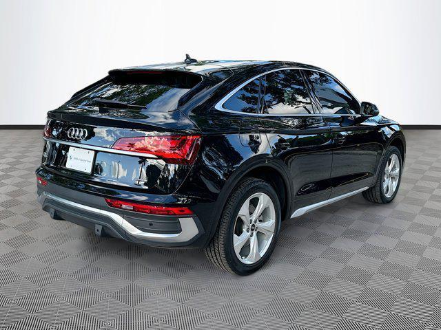 Black 2023 Audi Q5 Sportback 45 S line Premium Plus quattro ABS brakes, Alloy wheels, Compass, Electronic Stability Control, Front dual zone A/C, Heated door mirrors, Heated front seats, Illuminated entry, Low tire pressure warning, Power Liftgate, Remote keyless entry, Traction control.22/29 City/Highway MPGEquipped with ABS brakes, Alloy wheels, Compass, Electronic Stability Control, Front dual zone A/C, Heated door mirrors, Heated front seats, Illuminated entry, Low tire pressure warning, Power Liftgate, Remote keyless entry, Traction control, 10 Speakers, 4-Wheel Disc Brakes, Air Conditioning, AM/FM radio, Auto High-beam Headlights, Auto-dimming Rear-View mirror, Automatic temperature control, Axle Ratio: TBD, Brake assist, Bumpers: body-color, Delay-off headlights, Driver door bin, Driver vanity mirror, Dual front impact airbags, Dual front side impact airbags, Emergency communication system: Audi connect CARE, Exterior Parking Camera Rear, Four wheel independent suspension, Front anti-roll bar, Front Bucket Seats, Front Center Armrest, Front fog lights, Front reading lights, Garage door transmitter: HomeLink, Genuine wood console insert, Genuine wood dashboard insert, Genuine wood door panel insert, Heated 8-Way Power Front Bucket Sport Seats, Leather Seating Surfaces, Leather Shift Knob, Occupant sensing airbag, Outside temperature display, Overhead airbag, Overhead console, Panic alarm, Passenger door bin, Passenger vanity mirror, Power door mirrors, Power driver seat, Power moonroof: Panoramic, Power passenger seat, Power steering, Power windows, Radio data system, Radio: Audi Sound System, Rain sensing wipers, Rear air conditioning, Rear anti-roll bar, Rear fog lights, Rear reading lights, Rear seat center armrest, Rear window defroster, Rear window wiper, Security system, Speed control, Speed-sensing steering, Speed-Sensitive Wipers, Split folding rear seat, Spoiler, Steering wheel mounted audio controls, Tachometer, Telescoping steering wheel, Tilt steering wheel, Trip computer, Turn signal indicator mirrors, Variably intermittent wipers, and Wheels: 19' 5-Double-Arm Design Bi-Color Finish.