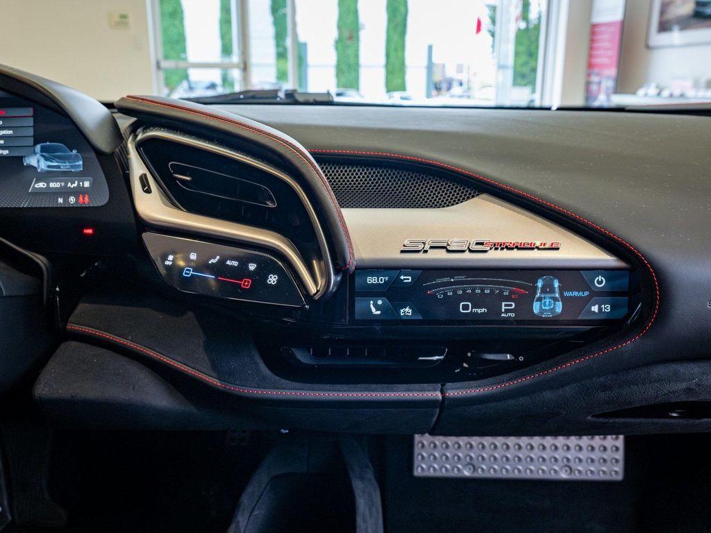 Engine and Performance: At the heart of this mechanical masterpiece lies a revolutionary powertrain, an electrified 4.0-liter twin-turbocharged V8 engine paired with three electric motors, delivering a combined output of 986 horsepower and 590 lb-ft of torque. The SF90 Stradale utilizes an advanced 8-speed dual-clutch transmission, catapulting it from 0 to 60 mph in just 2.5 seconds. The inclusion of the front and rear suspension lift ensures daily drivability, while the advanced front driving camera enhances safety and situational awareness.
