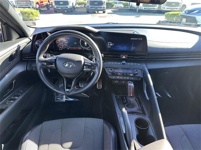 Clean CARFAX. Certified. 2023 Hyundai Elantra N Line *Fully detailed*, *Fresh oil change*, New Tires!, New brakes!, Ford Blue Advantage: Blue Certified Certified, Cargo Side Bins, First Aid Kit, Option Group 01, Preferred Accessory Package, Trunk/Cargo Hook, 18 x 7.5J Alloy Wheels, 4-Wheel Disc Brakes, 6 Speakers, ABS brakes, Air Conditioning, Alloy wheels, AM/FM radio: SiriusXM, Apple CarPlay & Android Auto, Auto High-beam Headlights, Automatic temperature control, Brake assist, Bumpers: body-color, Cargo Net, Carpeted Floor Mats, Combination Cloth & Leather Seating Surfaces, Delay-off headlights, Driver door bin, Driver vanity mirror, Dual front impact airbags, Dual front side impact airbags, Electronic Stability Control, Emergency communication system: Blue Link Connected Car Service (3-year complimentary subscription), Exterior Parking Camera Rear, Four wheel independent suspension, Front anti-roll bar, Front Bucket Seats, Front Center Armrest, Front dual zone A/C, Front reading lights, Fully automatic headlights, Heated door mirrors, Heated front seats, Heated Front Sport Bucket Seats, Illuminated entry, Leather Shift Knob, Leather steering wheel, Low tire pressure warning, Navigation System, Occupant sensing airbag, Outside temperature display, Overhead airbag, Overhead console, Panic alarm, Passenger door bin, Passenger vanity mirror, Power door mirrors, Power driver seat, Power moonroof, Power steering, Power windows, Radio: AM/FM/HD/SiriusXM Display Audio, Rear anti-roll bar, Rear seat center armrest, Rear window defroster, Remote keyless entry, Security system, Speed control, Speed-sensing steering, Split folding rear seat, Spoiler, Sport steering wheel, Steering wheel mounted audio controls, Tachometer, Telescoping steering wheel, Tilt steering wheel, Traction control, Trip computer, Variably intermittent wipers, Wheel Locks, Cargo Side Bins, First Aid Kit, Option Group 01, Preferred Accessory Package, Trunk/Cargo Hook. 28/36 City/Highway MPG Certification Program Details: Ford Blue Advantage: Blue Certified * 139 Point Inspection * Transferable Warranty * Vehicle History * Warranty Deductible: $100 * Roadside Assistance * Limited Warranty: 3 Month/4,000 Mile (whichever comes first) after new car warranty expires or from certified purchase date * and 11,000 FordPass Rewards Points to use toward first maintenance visit