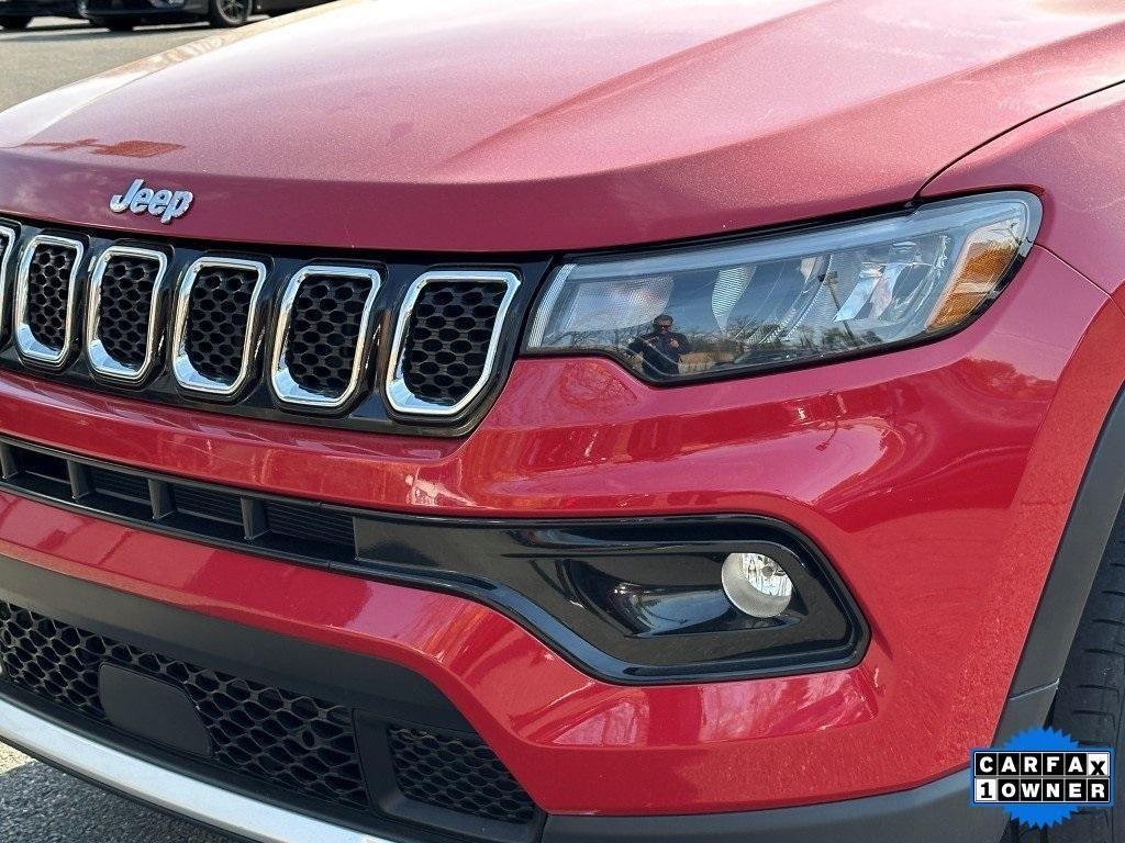 2023 Jeep Compass Limited Redline Pearlcoat 4WD 8-Speed Automatic 2.0L I4 DOHCCARFAX One-Owner. 4WD, 10.1'' Touchscreen Display, 3.73 Final Drive Ratio, 4-Wheel Disc Brakes, 6 Speakers, ABS brakes, Air Conditioning, Alloy wheels, AM/FM radio: SiriusXM, Auto High-beam Headlights, Automatic temperature control, Brake assist, Bumpers: body-color, Compass, Delay-off headlights, Disassociated Touchscreen Display, Driver door bin, Driver vanity mirror, Dual front impact airbags, Dual front side impact airbags, Electronic Stability Control, Four wheel independent suspension, Front anti-roll bar, Front Bucket Seats, Front Center Armrest w/Storage, Front dual zone A/C, Front fog lights, Front License Plate Bracket, Front reading lights, Fully automatic headlights, Heated door mirrors, Heated front seats, Heated steering wheel, Hidden Exhaust Tips-Dual, Illuminated entry, Knee airbag, Leather Shift Knob, Leatherette Seats, Low tire pressure warning, Occupant sensing airbag, Outside temperature display, Overhead airbag, Overhead console, Panic alarm, ParkView Rear Back-Up Camera, Passenger door bin, Passenger vanity mirror, Power door mirrors, Power driver seat, Power steering, Power windows, Quick Order Package 29G, Radio: Uconnect 5 w/10.1'' Display, Rain sensing wipers, Rear anti-roll bar, Rear seat center armrest, Rear window defroster, Rear window wiper, Remote keyless entry, Security system, Speed control, Split folding rear seat, Spoiler, Steering wheel mounted audio controls, Tachometer, Telescoping steering wheel, Tilt steering wheel, Traction control, Trip computer, Turn signal indicator mirrors, Variably intermittent wipers, Wheels: 18'' x 7'' Painted Diamond Cut Aluminum.Odometer is 7444 miles below market average! 24/32 City/Highway MPG