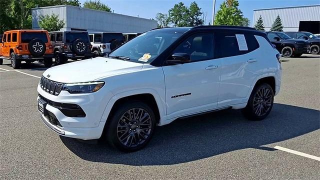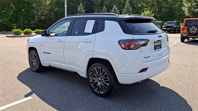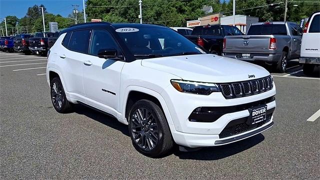 Certified. Bright White Clearcoat 2023 Jeep Compass High Altitude 4WD 8-Speed Automatic 2.0L I4 DOHC 4WD. Driver Assist Group I (360 Surround View Camera System, Highway Assist System, P&P Park & Unpark Assist System, ParkSense Fr/Rr Park Assist System, Traffic Sign Recognition, Universal Garage Door Opener, and Wireless Charging Pad), Elite Interior Group High Altitude (2nd Row USB Type A/C Charge Only, Driver Seat Memory, Foot Activated Open 'N Go Liftgate, Power 2-Way Passenger Lumbar Adjust, Power 8-Way Adjust Front Passenger Seat, Power Liftgate, Premium Leather Trimmed Bucket Seats, Reversible Carpet/Vinyl Cargo Mat, and Ventilated Front Seats), High Altitude Package, Quick Order Package 29F High Altitude (10.1 Touchscreen Display, 4G LTE Wi-Fi Hot Spot, Alexa Built-In, Body Color Door Claddings, Body Color Exterior Sill Moldings, Body Color Fascias, Body Color Wheel Flares, Cluster 10.25 TFT Color Display, Connected Travel & Traffic Services, Disassociated Touchscreen Display, Gloss Black Surround/Neutral Gray Rings, GPS Navigation, HD Radio, Integrated Voice Command w/Bluetooth, LED Low/Highbeam Projector Headlamps, Liquid Chrome/Chainmail Hydro Accent, Neutral Gray Exterior Accents, Neutral Gray Exterior Badging, Power Front/Fixed Rear Full Sunroof, Premium Alpine Speaker System, Premium LED Fog Lamps, Premium Taillamps, Radio: Uconnect 5 Nav w/10.1 Display, SiriusXM Guardian - Included Trial (B), SiriusXM Radio Service, SiriusXM w/360L, Tungsten Accent Stitching, and Wheels: 19 x 7.5 Aluminum Painted), FCA US LLC Certified Pre-Owned Certified, 4WD, 3.73 Final Drive Ratio, 4-Wheel Disc Brakes, 6 Speakers, ABS brakes, Air Conditioning, Alloy wheels, AM/FM radio: SiriusXM, Auto High-beam Headlights, Auto-dimming Rear-View mirror, Automatic temperature control, Brake assist, Bumpers: body-color, Compass, Delay-off headlights, Driver door bin, Driver vanity mirror, Dual front impact airbags, Dual front side impact airbags, Electronic Stability Control, Four wheel independent suspension, Front anti-roll bar, Front Bucket Seats, Front Center Armrest w/Storage, Front dual zone A/C, Front fog lights, Front License Plate Bracket, Front reading lights, Fully automatic headlights, Heated door mirrors, Heated front seats, Heated steering wheel, Hidden Exhaust Tips-Dual, Illuminated entry, Knee airbag, Leather Shift Knob, Leatherette Seats, Low tire pressure warning, Occupant sensing airbag, Outside temperature display, Overhead airbag, Overhead console, Panic alarm, ParkView Rear Back-Up Camera, Passenger door bin, Passenger vanity mirror, Power door mirrors, Power driver seat, Power steering, Power windows, Radio: Uconnect 5 w/10.1 Display, Rain sensing wipers, Rear anti-roll bar, Rear seat center armrest, Rear window defroster, Rear window wiper, Remote keyless entry, Security system, Speed control, Split folding rear seat, Spoiler, Steering wheel mounted audio controls, Tachometer, Telescoping steering wheel, Tilt steering wheel, Traction contr