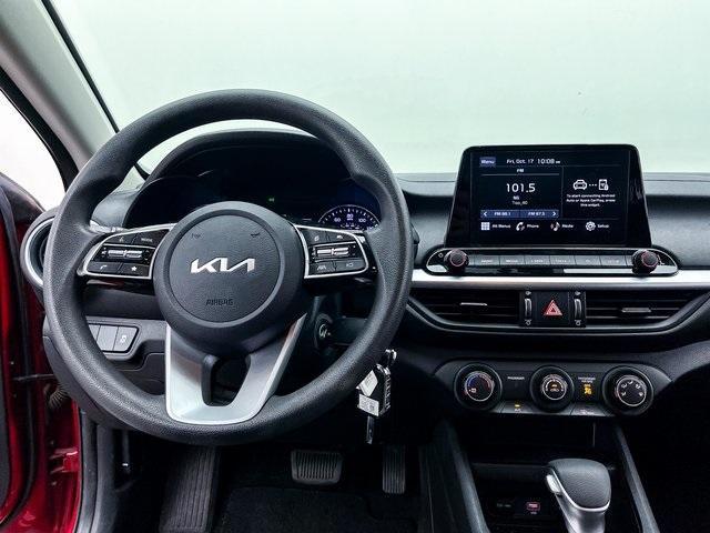 ((**2023 KIA FORTE LXS**8 TOUCHSCREEN WITH REAR CAMERA AND DYNAMIC GUIDELINES**FORWARD COLLISION AVOIDANCE ASSIST PEDESTRIAN**LANE DEPARTURE WARNING**LANE FOLLOWING ASSIST**LANE KEEPING ASSIST**DRIVER ATTENTION WARNING AND HIGH BEAM ASSIST**ANTI LOCK BRAKING SYSTEM**ELECTRONIC STABILITY CONTROL**VEHICLE STABILITY MANAGEMENT**HILL START ASSIST CONTROL**DRIVE MODE SELECT**TIRE PRESSURE MONITORING SYSTEM**ANDROID AUTO AND APPLE CARPLAY**BLUETOOTH WIRELESS TECHNOLOGY**USB/MEDIA PORT AND 12 VOLT OUTLET**4.2 INSTRUMENT DISPLAY**REMOTE KEYLESS ENTRY WITH TRUNK OPENER**FRONT BUCKET SEATS**MULTI ADJUSTABLE MANUAL FRONT SEATS**60/40 SPLIT FOLDING REAR SEATS**REAR OCCUPANT ALERT**OVERHEAD MAPLIGHTS AND SUNGLASS HOLDER**TILT AND TELESCOPIC STEERING COLUMN**STEERING WHEEL CONTROLS (BLUETOOTH/AUDIO/CRUISE)**16 ALLOY WHEELS WITH WHEEL COVERS**AUTO ON/OFF PROJECTOR HEADLIGHTS**TIRE MOBILITY KIT**CERTIFIED PRE-OWNED KIA**ONE OWNER**REMAINING FACTORY WARRANTY**TOP TO BOTTOM SERVICE INSPECTION**TRADES WELCOME**)) CARFAX One-Owner. Certified. Currant Red 2023 Kia Forte LXS FWD CVT 2.0L I4 MPI 28/39 City/Highway MPG Kia Certified Pre-Owned Details: * 165 Point Inspection * Includes Rental Car and Trip Interruption Reimbursement. 3 month Sirius trial subscription * Roadside Assistance * Warranty Deductible: $50 * Powertrain Limited Warranty: 120 Month/100000 Mile (whichever comes first) from original in-service date * Vehicle History * Transferable Warranty * Limited Warranty: 12 Month/12000 Mile (whichever comes first) Platinum Coverage from certified purchase date 16 x 6.5J Alloy Wheels 4 Speakers 4-Wheel Disc Brakes ABS brakes Air Conditioning Alloy wheels AM/FM radio Apple CarPlay & Android Auto Auto High-beam Headlights Brake assist Delay-off headlights Electronic Stability Control Exterior Parking Camera Rear Front anti-roll bar Front Bucket Seats Front Center Armrest Front wheel independent suspension Fully automatic headlights Illuminated entry Low tire pressure warning Outside temperature display Overhead console Panic alarm Passenger door bin Power door mirrors Power steering Power windows Radio: 8 Display Audio Security system Split folding rear seat Steering wheel mounted audio controls Tachometer Telescoping steering wheel Tilt steering wheel Traction control Trip computer Variably intermittent wipers. Selling price excludes any installed accessories. Second key floor mats or owner's manual may not be available on all pre-owned vehicles. Prices are adjust daily depending on market conditions and demand. Interested buyers are encouraged to contact dealer to lock in pricing. See dealer addendum for any accessories or optional equipment installed prior to sale. While we do our best to provide accurate pricing and vehicle equipment errors do occur. Please check with dealer to confirm current pricing and incentives. It is the buyers responsibility and encouraged by dealer to inspect the vehicle prior to sale. Price is plus tax title license $9