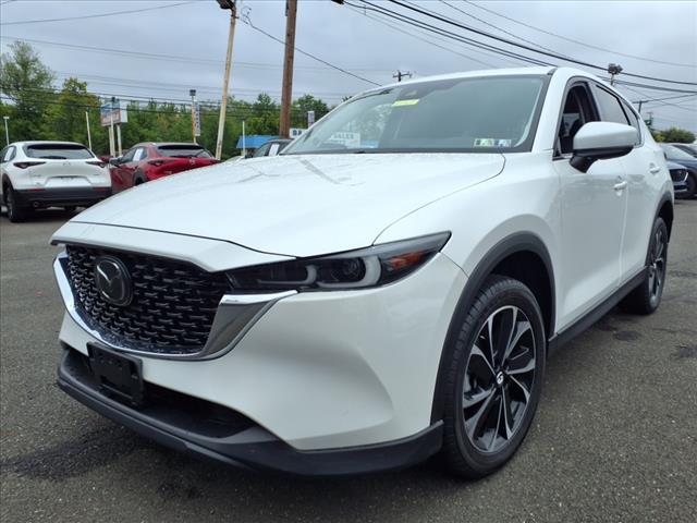 Premium Presence & Mazda Certified - 2023 Mazda CX-5 2.5S Premium Plus Package AWD in Rhodium White Metallic with Black leather interior.