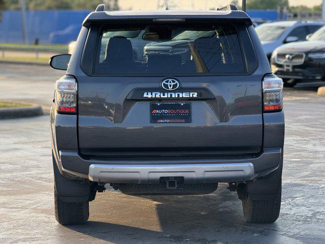 Carfax and Autocheck accident free.Window Grid Diversity Antenna, Wi-Fi Connect with up to 2GB within Mobile Hotspot Internet Access, Wheels: 17' Unique 7-Spoke Off-Road Alloy -inc: black painted accents, Variable Intermittent Wipers w/Heated Wiper Park, Valet Function, Turn-By-Turn Navigation Directions, Trip Computer, Transmission: 5-Speed ECT Automatic, Transmission w/Driver Selectable Mode, Sequential Shift Control and Oil Cooler, Trailer Wiring Harness. This Toyota 4Runner has a powerful Regular Unleaded V-6 4.0 L/241 engine powering this Automatic transmission.*Experience a Fully-Loaded Toyota 4Runner TRD Off Road Premium *Toyota Safety Sense P (TSS-P), Tires: P265/70R17 Mud & Snow, Tailgate/Rear Door Lock Included w/Power Door Locks, Steel Spare Wheel, Splash Guards, Solid Axle Rear Suspension w/Coil Springs, SofTex Seat Trim, Single Stainless Steel Exhaust, Side Impact Beams, Seats w/Leatherette Back Material, Safety Connect Emergency Sos Capability, Remote Keyless Entry w/Integrated Key Transmitter, 4 Door Curb/Courtesy, Illuminated Entry, Illuminated Ignition Switch and Panic Button, Rear Cupholder, Rear Cross-Traffic Alert (RCTA), Rear Child Safety Locks, Radio w/Seek-Scan, Clock and Steering Wheel Controls, Proximity Key For Doors And Push Button Start, Power Rear Windows and Fixed 3rd Row Windows, Power Door Locks w/Autolock Feature, Power 1st Row Windows w/Front And Rear 1-Touch Up/Down.*Visit Us Today *For a must-own Toyota 4Runner come see us at Auto Boutique - TX, 3507 FM 528, Alvin, TX 77511. Just minutes away!*Seller Notes and Disclaimer: We honor all advertised prices. If you saw this vehicle listed on a third-party site (e.g., CarGurus, AutoTrader, Cars.com), please mention it so we can verify and match that price. *Although every reasonable effort has been made to ensure the accuracy of the information contained on this site, absolute accuracy cannot be guaranteed. Dealer is not responsible for errors and omissions. All vehicles are subject to prior sale. Price does not include applicable state sales tax, title, license plate, dealer documentation fee of $225 (This charge represents costs and profit to the dealer for items such as inspecting, cleaning, and adjusting vehicles, and preparing documents related to the sale), Temp Tag ($5), Registration ($17.25), Certificate of Title ($33), Used inspection Fee ($25.50), Golden Plains Environmental Paint and Interior Protection ($499), LoJack Anti-Theft protection ($1,499).For additional information and a complete breakdown of fees, add-ons, taxes, and payments, visit our website at: http://autoboutiquetexas.com.