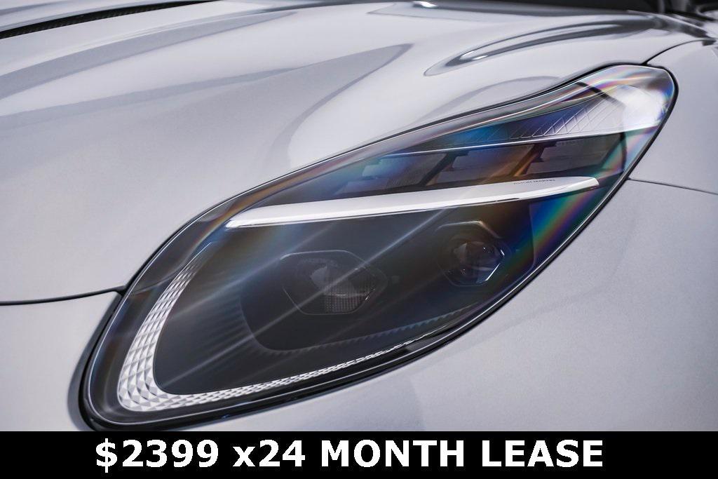 Aston Martin DB12 finished in iconic Lightning Silver paintwork. The interior is upholstered from Deep Purple soft-grain leather featuring Silver stitching & brogue. DB12 is the quintessential grand tourer bred with supercar DNA. It's refinement and elegance is pure grand tourer. Yet, it's dynamic agility and torque-rich engine are pure super tourer. The 671hp twin-turbocharged V8 is capable of propelling the DB12 to 202mph. Yet, the quilted and finely detailed interior is capable of cosseting in truly grand style. DB12 is Bolder. Finer. Fiercer. Purer.This DB12 is exceptionally commissioned with, -11 speaker Aston Martin Audio -Heated & Ventilated seats -Heated steering wheel -Exterior Black Pack -Apple CarPlay -Touchscreen interface-Surround view cameras-Advanced Driver assist-Adjustable suspension-21'' wheels