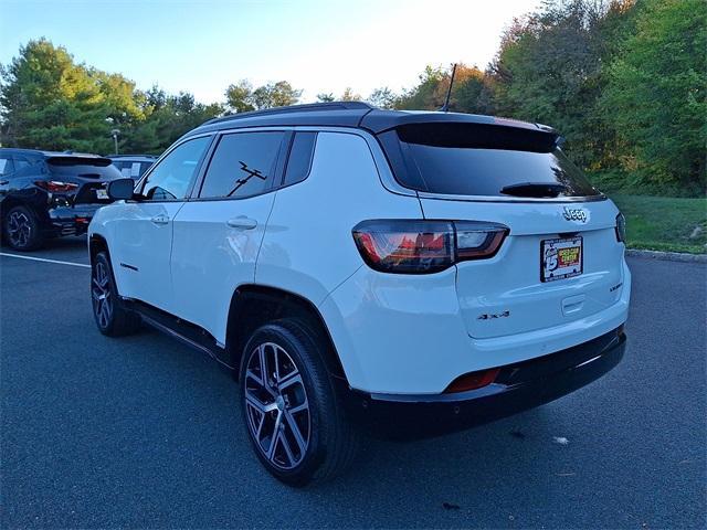 Certified. Bright White Clearcoat 2024 Jeep Compass Limited 4WD 8-Speed Automatic 2.0L I4 DOHC 4WD. Driver Assist Group I (360 Surround View Camera System, Active Driving Assist System, P&P Park & Unpark Assist System, ParkSense Fr/Rr Park Assist System, Traffic Sign Recognition, Universal Garage Door Opener, and Wireless Charging Pad), Elite Group (10.1 Touchscreen Display, 4G LTE Wi-Fi Hot Spot, Alexa Built-In, Cluster 10.25 TFT Color Display, Connected Travel & Traffic Services, Diamond Black Door Cladding, Diamond Black Exterior Sill, Diamond Black Fascias, Diamond Black Wheel Flares, Driver Seat Memory, Foot Activated Open 'N Go Liftgate, For Details, Visit DriveUconnect.com, For More Info, Call 800-643-2112, Global Telematics Box Module (TBM), GPS Navigation, HD Radio, Integrated Voice Command w/Bluetooth, LED Low/Highbeam Projector Headlamps, Power 2-Way Passenger Lumbar Adjust, Power 8-Way Adjust Front Passenger Seat, Power Liftgate, Premium Leather Trimmed Bucket Seats, Premium LED Fog Lamps, Premium Taillamps, Radio: Uconnect 5 Nav w/10.1 Display, Reversible Carpet/Vinyl Cargo Mat, SiriusXM Guardian - Included Trial (B), SiriusXM Radio Service, SiriusXM w/360L, Ventilated Front Seats, and Wheels: 19 x 7.5 Painted Diamond Cut Aluminum), Quick Order Package 29G Limited, FCA US LLC Certified Pre-Owned Certified, 4WD, 3.73 Final Drive Ratio, 4-Wheel Disc Brakes, 6 Speakers, ABS brakes, Air Conditioning, Alloy wheels, AM/FM radio: SiriusXM, Auto High-beam Headlights, Auto-dimming Rear-View mirror, Automatic temperature control, Brake assist, Bumpers: body-color, Compass, Delay-off headlights, Disassociated Touchscreen Display, Driver door bin, Driver vanity mirror, Dual front impact airbags, Dual front side impact airbags, Electronic Stability Control, Emergency communication system: Jeep Connect, Four wheel independent suspension, Front anti-roll bar, Front Bucket Seats, Front Center Armrest w/Storage, Front dual zone A/C, Front fog lights, Front License Plate Bracket, Front reading lights, Fully automatic headlights, Heated door mirrors, Heated front seats, Heated steering wheel, Illuminated entry, Knee airbag, Leather Shift Knob, Leather steering wheel, Leatherette Seats, Low tire pressure warning, Occupant sensing airbag, Outside temperature display, Overhead airbag, Overhead console, Panic alarm, ParkView Rear Back-Up Camera, Passenger door bin, Passenger vanity mirror, Power door mirrors, Power driver seat, Power steering, Power windows, Radio: Uconnect 5 w/10.1 Display, Rain sensing wipers, Rear anti-roll bar, Rear seat center armrest, Rear window defroster, Rear window wiper, Remote keyless entry, Security system, Speed control, Split folding rear seat, Spoiler, Steering wheel mounted audio controls, Tachometer, Telescoping steering wheel, Tilt steering wheel, Traction control, Trip computer, Turn signal indicator mirrors, Variably intermittent wipers, and Wheels: 18 x 7 Painted Diamond Cut AluminuM. The team of sales, finance, a