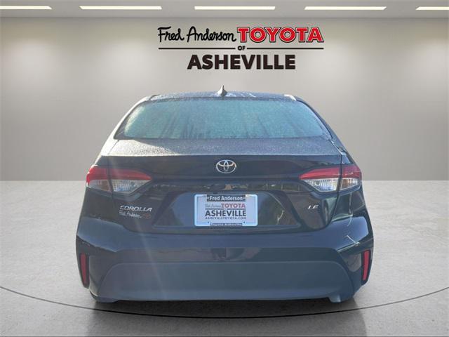 CARFAX One-Owner. Clean CARFAX. 2024 Toyota Corolla LE Midnight Black Metallic 16'' Steel Wheels w/Covers, 4-Wheel Disc Brakes, 6 Speakers, ABS brakes, Air Conditioning, AM/FM radio: SiriusXM, Auto High-beam Headlights, Automatic temperature control, Brake assist, Bumpers: body-color, Delay-off headlights, Driver door bin, Driver vanity mirror, Dual front impact airbags, Dual front side impact airbags, Electronic Stability Control, Emergency communication system: Safety Connect (up to 10-year trial subscription), Exterior Parking Camera Rear, Fabric Seat Trim, Front anti-roll bar, Front Bucket Seats, Front Center Armrest, Front reading lights, Front wheel independent suspension, Fully automatic headlights, Illuminated entry, Knee airbag, Low tire pressure warning, Occupant sensing airbag, Outside temperature display, Overhead airbag, Panic alarm, Passenger door bin, Passenger vanity mirror, Power door mirrors, Power steering, Power windows, Radio data system, Radio: 8'' Toyota Audio Multimedia, Rear anti-roll bar, Rear seat center armrest, Rear side impact airbag, Rear window defroster, Remote keyless entry, Speed control, Split folding rear seat, Steering wheel mounted audio controls, Tachometer, Telescoping steering wheel, Tilt steering wheel, Traction control, Trip computer.FWD CVT 2.0L I4 DOHC 16V 32/41 City/Highway MPG 32/41 City/Highway MPGQualifying New or Non-Certified Used Toyotas, Subarus, or Nissans bought here and serviced at a FAMILY STORE receive our FULL ANDERSON FAMILY PLAN at NO COST to YOU! Our full family plan includes: Peace of Mind 3-Day Vehicle Exchange*Lifetime Oil Changes*Service Loaners. Call us at 828-585-5825, visit online at www.AshevilleToyota.com, or visit us at Fred Anderson Toyota of Asheville - 777 Brevard Rd Asheville, NC 28806 to learn more! Our # 1 goal is to help you find the vehicle you love at a price you can afford wrapped in a deal you dont want to walk away from. All prices exclude tax, tag, license, title, and registration for your state; NC inspection (up to $30 on used vehicles), and admin ($699) fees. All vehicle internet pricing is subject to change and requires standard financing through SETF (conditions apply for Special Rate financing). From time to time in the transfer of data on the internet, there are errors. Dealer is not responsible for errors in advertised prices. See dealer for complete details.Welcome to Fred Anderson Toyota of Asheville - We're so happy you're here! Whether you stopped by because you are looking for a reliable, honest Toyota dealership in NC, or you're just browsing for your next dream car, we are ready and willing to do whatever we can to help make your experience a truly exceptional one.We typically have over 200 new Toyota in-transit and stock over 200 used vehicles DAILY and work with over 20 different banks to help ensure you get your best deal! (Recent production and transportation restrictions may cause inventory levels to vary). We are proud to serve our neighboring customers in Asheville, NC, along with our customers throughout the Black Mountain, Mars Hill, Weaverville, Waynesville, Hendersonville, Marion, Greenville and Spartanburg areas. Anderson Automotive Group is a family-owned and operated business with eight (8) locations throughout North and South Carolina. The group has Toyota and Nissan dealerships located in Raleigh and Asheville, NC; Prestige Subaru in Asheville, NC; additional Toyota stores in Sanford, NC as well as Charleston, SC; with a Kia store in Raleigh. All Anderson Automotive Dealerships are known as ''The Family Store,'' our business is rooted in family values and structured with several family members serving in key positions.