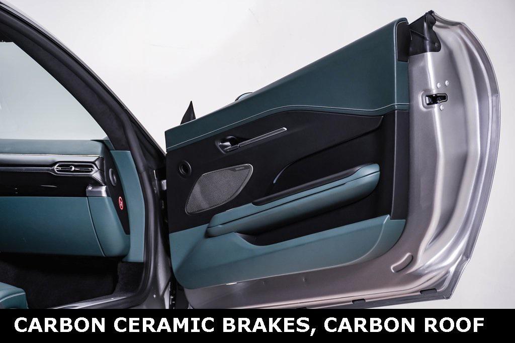 Aston Martin Vantage finished in the launch-spec of Aluminite Silver with Bronze wheels & extensive carbon fiber. The interior is upholstered from Eifel Green soft-grain leather featuring Silver contrast stitching & carbon fiber trim. Never-before registered factory demonstrator now offered as Timeless Certified with factory warranty until August 2027.Vantage is the most dynamic Aston Martin. Crafted for real drivers. A sports car that looks beyond performance figures to bring joy to every nerve ending. With a 656hp twin-turbocharged V8, Vantage is a ferocious 202mph machine. Thanks to a lightweight aluminum chassis, adjustable Bilstein suspension & perfect weight distribution it is also exceptionally athletic.This Vantage was exceptionally commissioned with,-Carbon Ceramic brakes with Racing Green Calipers-Carbon Fiber Lower Bodypack-Carbon Fiber Upper Bodypack-Carbon Fiber Roof-Satin Silver interior trim-Dark Chrome interior jewellery-Smoked taillights-1,170W Bowers & Wilkins Audio-Sports Plus seats-Heated & Ventilated seats with power bolsters-Surround view cameras-Wireless charging-Apple CarPlay-3 mode adjustable suspension-Multi mode exhaust-21'' Forged wheels