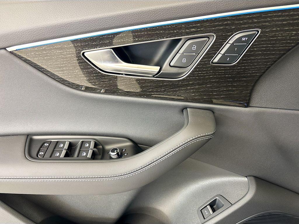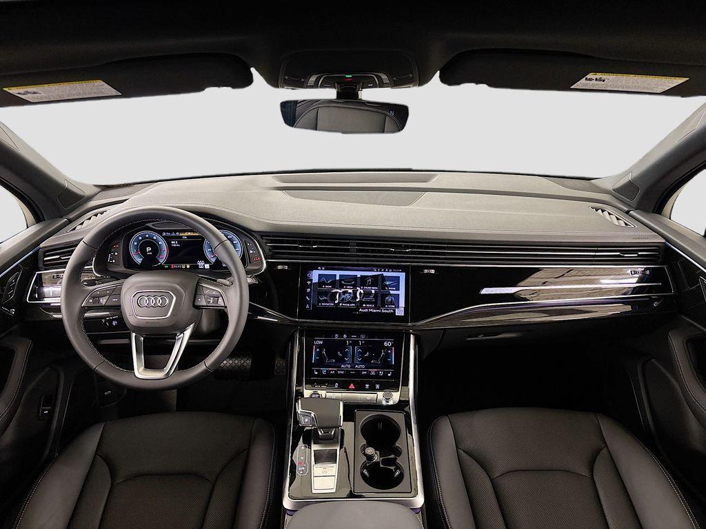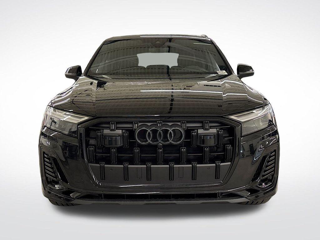 Mythos Black Metallic 2025 Audi Q7 55 Premium Plus quattro quattro 8-Speed Automatic with Tiptronic 3.0L TFSI Equipped with Black Optic Package (Anthracite Gray Audi Rings, Black Door Blades, Black Exterior Trim, Black Grille, Black Roof Rails, Black Window Surrounds, Dark Chrome Exhaust Tips, and Wheels: 21 5-Double-Spoke-Design Matte Gray), Convenience Package (Heated Steering Wheel, Top View Camera System, and Wireless Phone Charging Pad), Executive Plus Package (Comfort Adaptive Air Suspension, Control Buttons in Gloss Black w/Haptic Feedback, Dual-Pane Acoustic Glass for Side Windows, Four-Zone Automatic Climate Control, Front Seats w/Ventilation, Heated Rear Seats, Power Soft-Closing Doors, Rear Door/Side Windows & Tailgate Sunshades, and Traffic Sign Recognition), LED Interior Lighting Package Plus, Premium Plus Package (Bang & Olufsen Premium Sound System w/3D Sound, Illuminated Door Sills, and Wheels: 20 5-Double-Spoke), 10 Speakers, 3rd row seats: bench, 4-Wheel Disc Brakes, ABS brakes, Air Conditioning, Alloy wheels, AM/FM radio: SiriusXM w/360L, Audi Beam Rings, Audi Guard Protection Kit, Auto High-beam Headlights, Auto-dimming door mirrors, Auto-dimming Rear-View mirror, Automatic temperature control, Brake assist, Bumpers: body-color, Compass, Delay-off headlights, Driver door bin, Driver vanity mirror, Dual front impact airbags, Dual front side impact airbags, Electronic Stability Control, Emergency communication system: Audi connect CARE, Exterior Parking Camera Rear, Four wheel independent suspension, Front anti-roll bar, Front Bucket Seats, Front Center Armrest, Front dual zone A/C, Front fog lights, Front reading lights, Fully automatic headlights, Garage door transmitter: HomeLink, Genuine wood door panel insert, Heated door mirrors, Heated Front Bucket Seats, Heated front seats, Illuminated entry, Leather Seating Surfaces, Leather Shift Knob, Leather steering wheel, Low tire pressure warning, Memory seat, Navigation system: Audi MMI Navigation plus with Touch Response, Occupant sensing airbag, Outside temperature display, Overhead airbag, Overhead console, Panic alarm, Passenger door bin, Passenger vanity mirror, Power door mirrors, Power driver seat, Power Liftgate, Power moonroof: Panoramic, Power passenger seat, Power steering, Power windows, Privacy Trunk Cover, Radio data system, Radio: Audi Sound System, Rain sensing wipers, Rear air conditioning, Rear anti-roll bar, Rear fog lights, Rear reading lights, Rear seat center armrest, Rear side impact airbag, Rear window defroster, Rear window wiper, Reclining 3rd row seat, Remote keyless entry, Security system, Speed control, Speed-sensing steering, Split folding rear seat, Spoiler, Steering wheel memory, Steering wheel mounted audio controls, Tachometer, Telescoping steering wheel, Tilt steering wheel, Traction control, Trip computer, Turn signal indicator mirrors, Variably intermittent wipers, Wheels: 19 5-Arm-Star Design, Wheels: 22 5-V-Spoke Star Design, and Wireless P