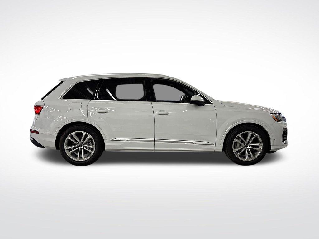 Glacier White Metallic 2025 Audi Q7 55 Premium Plus quattro quattro 8-Speed Automatic with Tiptronic 3.0L TFSI Equipped with Convenience Package (Heated Steering Wheel, Top View Camera System, and Wireless Phone Charging Pad), Executive Plus Package (Comfort Adaptive Air Suspension, Control Buttons in Gloss Black w/Haptic Feedback, Dual-Pane Acoustic Glass for Side Windows, Four-Zone Automatic Climate Control, Front Seats w/Ventilation, Heated Rear Seats, Power Soft-Closing Doors, Rear Door/Side Windows & Tailgate Sunshades, and Traffic Sign Recognition), LED Interior Lighting Package Plus, Premium Plus Package (Bang & Olufsen Premium Sound System w/3D Sound, Illuminated Door Sills, and Wheels: 20 5-Double-Spoke), 10 Speakers, 3rd row seats: bench, 4-Wheel Disc Brakes, 7-Pin Adapter, ABS brakes, Air Conditioning, Alloy wheels, AM/FM radio: SiriusXM w/360L, Audi Beam Rings, Audi Guard All-Weather Mats, Auto High-beam Headlights, Auto-dimming door mirrors, Auto-dimming Rear-View mirror, Automatic temperature control, Brake assist, Bumpers: body-color, Compass, Delay-off headlights, Driver door bin, Driver vanity mirror, Dual front impact airbags, Dual front side impact airbags, Electronic Stability Control, Emergency communication system: Audi connect CARE, Exterior Parking Camera Rear, Four wheel independent suspension, Front anti-roll bar, Front Bucket Seats, Front Center Armrest, Front dual zone A/C, Front fog lights, Front reading lights, Fully automatic headlights, Garage door transmitter: HomeLink, Genuine wood door panel insert, Heated door mirrors, Heated Front Bucket Seats, Heated front seats, Illuminated entry, Leather Seating Surfaces, Leather Shift Knob, Leather steering wheel, Low tire pressure warning, Memory seat, Navigation system: Audi MMI Navigation plus with Touch Response, Occupant sensing airbag, Outside temperature display, Overhead airbag, Overhead console, Panic alarm, Passenger door bin, Passenger vanity mirror, Power door mirrors, Power driver seat, Power Liftgate, Power moonroof: Panoramic, Power passenger seat, Power steering, Power windows, Privacy Trunk Cover, Radio data system, Radio: Audi Sound System, Rain sensing wipers, Rear air conditioning, Rear anti-roll bar, Rear fog lights, Rear reading lights, Rear seat center armrest, Rear side impact airbag, Rear window defroster, Rear window wiper, Reclining 3rd row seat, Remote keyless entry, Security system, Speed control, Speed-sensing steering, Split folding rear seat, Spoiler, Steering wheel memory, Steering wheel mounted audio controls, Tachometer, Telescoping steering wheel, Tilt steering wheel, Traction control, Trailer Hitch, Trip computer, Turn signal indicator mirrors, Variably intermittent wipers, Wheels: 19 5-Arm-Star Design, and Wireless Phone Charging Pad Delete.