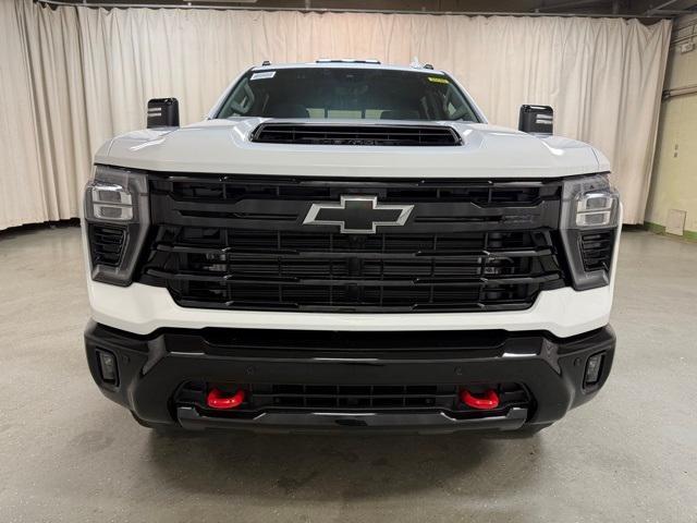 Summit White 2025 Chevrolet Silverado 3500HD LTZ 4WD 10-Speed Automatic Duramax 6.6L V8 Turbodiesel 10-Speed Automatic, 4WD, Black Leather, 10-Way Power Driver Seat Adjuster w/Lumbar, 10-Way Power Passenger Seat Adjuster w/Lumbar, 120-Volt Bed Mounted Power Outlet, 120-Volt Interior Power Outlet, 6-Speaker Audio System Feature, Adaptive Cruise Control, AM/FM radio: SiriusXM with 360L, Auto-Dimming Inside Rearview Mirror w/Camera, Bed View Camera w/2 Trailer Camera Provisions, Black Beltline Moldings, Black Grille Bar w/Chevy Black Bow Tie, Bluetooth® For Phone, Body-Color Door Handles, Chevytec Spray-On Black Bedliner, Driver Memory, Front dual zone A/C, Front Frame-Mounted Red Recovery Hooks, Gooseneck/5th Wheel Prep Package, HD Surround Vision, Heated 2nd Row Outboard Seats, Heated Driver & Front Outboard Passenger Seats, Heated Steering Wheel, High Gloss Black Front Bumper, High Gloss Black Mirror Caps, High Gloss Black Rear Bumper, Hill Descent Control, LTZ Convenience Package II, LTZ Plus Package, Memory seat, Multicolor 15 Diagonal Head-Up Display, Perf Leather-Appointed Front Outboard Seat Trim, Power Sliding Rear Window w/Defogger, Power Sunroof, Power-Retractable Assist Steps, Radio: Chevrolet Infotainment 3 Premium System, Rear Cross Traffic Alert, Safety Alert Seat, Safety Package, Steering Wheel Audio Controls, Technology Package, Telescoping steering wheel, Tilt steering wheel, Trail Boss Package, Trailer Camera Provisions, Trailer Side Blind Zone Alert, Ultrasonic Front & Rear Park Assist, Universal Home Remote, Up-Level Rear Seat w/Storage Package, Ventilated Driver & Front Passenger Seats, Wheels: 20 High-Gloss Black Painted, Z71 Off-Road Package.
