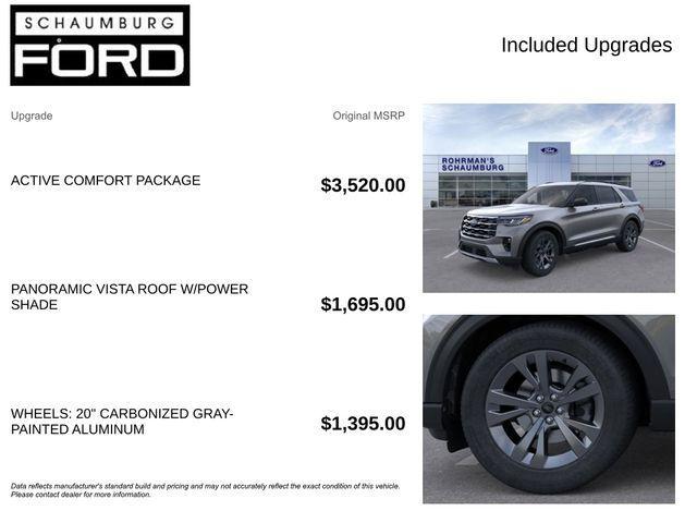 Discover the ultimate adventure-ready SUV with the all-new 2025 Ford Explorer Active. This exceptional vehicle is designed to elevate your driving experience, offering unparalleled capability, cutting-edge technology, and a level of comfort that will surpass your expectations. Crafted with the discerning explorer in mind, the 2025 Ford Explorer Active boasts an impressive array of features that cater to your every need. Prepare to be captivated by the standout amenities: ⢠ACTIVE COMFORT PACKAGE: Indulge in the convenience of Second Row HVAC Controls, a Heated Steering Wheel, Universal Garage Door Opener, and more. ⢠PANORAMIC VISTA ROOF W/POWER SHADE: Bask in the natural light and enjoy the breathtaking views from every angle. ⢠WHEELS: 20 CARBONIZED GRAY-PAINTED ALUMINUM: Striking and durable, these wheels complement the Explorer Active's bold and rugged design. The 2.3L EcoBoost I-4 engine and 10-Speed Automatic 4WD powertrain provide the perfect blend of power and efficiency, delivering an exceptional 20 city/27 highway MPG. Whether you're conquering the urban jungle or exploring the great outdoors, this SUV is ready to take you there with confidence. Experience the perfect balance of style and substance with the 2025 Ford Explorer Active. Boasting a sleek Gray exterior and a wealth of cutting-edge features, this SUV is a true testament to Ford's commitment to innovation and customer satisfaction. Imagine the possibilities that await you in this remarkable vehicle. With its versatile capabilities and premium amenities, the 2025 Ford Explorer Active is the perfect companion for your next adventure. Visit our showroom today and let us demonstrate how this exceptional SUV can transform your driving experience. At our dealership, we understand that your time is valuable, and we are dedicated to providing you with a seamless and stress-free purchasing process. Our knowledgeable sales team is here to guide you through every step, ensuring that you find the perfect vehicle to suit your lifestyle and needs. Don't settle for anything less than the best. Discover the 2025 Ford Explorer Active and unlock a world of possibilities. Visit our showroom today and experience the difference for yourself.
