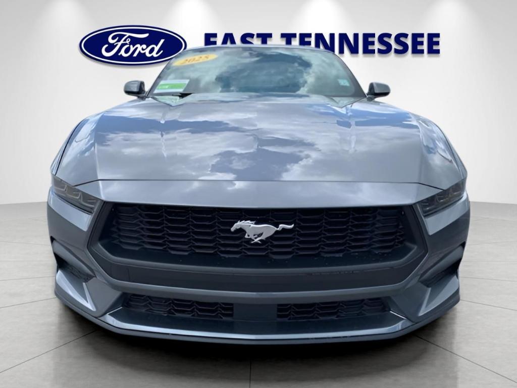 2025 Ford Mustang EcoBoost Gray Recent Arrival! 4-Wheel Disc Brakes, 6 Speakers, ABS brakes, AM/FM Stereo, Automatic temperature control, Cloth Bucket Seats, Compass, Delay-off headlights, Electronic Stability Control, Exterior Parking Camera Rear, Front dual zone A/C, Fully automatic headlights, Illuminated entry, Low tire pressure warning, Outside temperature display, Panic alarm, Power windows, Rain sensing wipers, Rear Parking Sensors, Rear window defroster, Remote keyless entry, Speed control, Steering wheel mounted audio controls, SYNC 4, Traction control, Variably intermittent wipers. 10-Speed Automatic Your new Ford is in the top 10 Best Trucks & SUV's! You will have all the new technology, safety & security features for peace of mind, and the best ride & handling truck on the road. Don't forget to ask about CarDoc, the Membership and Maintenance Program Exclusive to the Victory Automotive Family. We offer 3 years and 5 years to accommodate all driving styles. Call (931) 250-4812 today to schedule your VIP Appointment with our Ford Certified Sales Team here 6 days a week for all your shopping needs or go online to get preapproved at https://www.easttennesseeford.com/finance/get-pre-approved/ 21/32 City/Highway MPG Stop Clicking and Call Now! Thinking about Trading? We have you Covered. We'll give you up to 125% of the Book value on your trade! Financing? No worries! Our Finance Department goes to work for you with 40+ different lenders, weâre able to accept all applications. Get Pre-Approved Today at: https://www.easttennesseeford.com/finance/get-pre-approved/. This vehicle won't last long at this price! Largest Used Car Super Store serving the Greater Crossville, Cookeville and Monterey Area. Call Daniel OâDell Internet Sales Manager at (931) 250-4812 to schedule your appointment Today!! East Tennessee Ford, Used Car Giant.