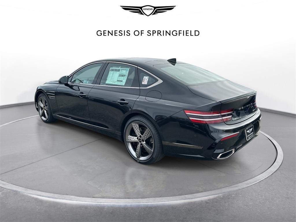 Black 2025 Genesis G80 3.5T 18 Speakers, 4-Wheel Disc Brakes, ABS brakes, Adaptive suspension, Air Conditioning, Alloy wheels, AM/FM radio: SiriusXM, Android Auto & Apple CarPlay, Anti-whiplash front head restraints, Auto High-beam Headlights, Auto tilt-away steering wheel, Auto-dimming door mirrors, Auto-dimming Rear-View mirror, Automatic temperature control, Bumpers: body-color, Compass, Delay-off headlights, Driver door bin, Driver vanity mirror, Dual front impact airbags, Dual front side impact airbags, Electronic Stability Control, Emergency communication system: Genesis Connected Services, Exterior Parking Camera Rear, Four wheel independent suspension, Front anti-roll bar, Front Bucket Seats, Front Center Armrest, Front dual zone A/C, Front reading lights, Fully automatic headlights, Garage door transmitter: HomeLink, Heads-Up Display, Heated & Ventilated Front Bucket Seats, Heated door mirrors, Heated front seats, Heated rear seats, Heated steering wheel, Illuminated Door Scuff Plates, Illuminated entry, Knee airbag, Leather steering wheel, Low tire pressure warning, Memory seat, Nappa Leather Seating Surfaces, Navigation System, NFC Key Card, Occupant sensing airbag, Option Group 01, Outside temperature display, Overhead airbag, Overhead console, Panic alarm, Passenger door bin, Passenger vanity mirror, Power door mirrors, Power driver seat, Power moonroof, Power passenger seat, Power steering, Power windows, Radio data system, Radio: AM/FM/HD/SiriusXM Bang & Olufsen Audio Sys, Rain sensing wipers, Rear air conditioning, Rear anti-roll bar, Rear reading lights, Rear seat center armrest, Rear side impact airbag, Rear Window Blind, Rear window defroster, Remote keyless entry, Security system, Speed control, Speed-sensing steering, Speed-Sensitive Wipers, Steering wheel memory, Steering wheel mounted audio controls, Tachometer, Telescoping steering wheel, Tilt steering wheel, Traction control, Trip computer, Turn signal indicator mirrors, Variably intermittent wipers, Ventilated front seats, Wheels: 20 x 8.5J Fr & 20 x 9.5J Rr Sport Alloy. AWD 8-Speed Automatic 3.5L V6 PDI Turbocharged DOHC 24V LEV3-ULEV50 375hp