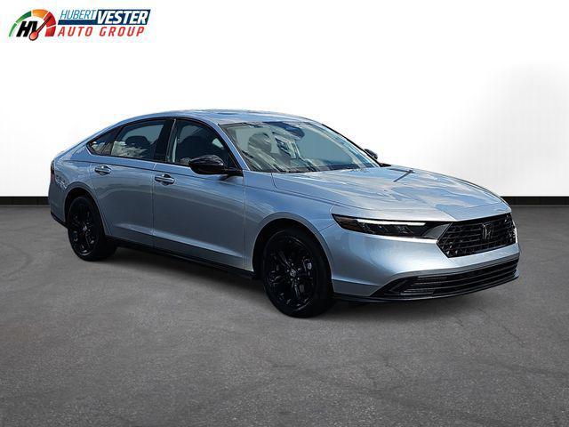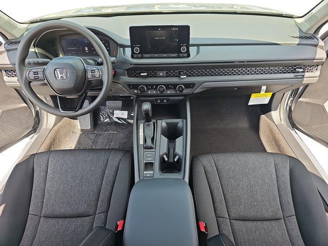 Solar Silver Metallic 2025 Honda Accord SE FWD CVT 1.5T I4 DOHC 16V Turbocharged VTECblack Cloth, 4-Wheel Disc Brakes, 8 Speakers, ABS brakes, Adaptive Cruise Control: Adaptive Cruise Control (ACC) with Low-Speed Follow, Air Conditioning, Alloy wheels, AM/FM radio, Apple CarPlay/Android Auto, Auto High-beam Headlights, Automatic temperature control, Blind Spot Information (BSI) System warning, Brake assist, Bumpers: body-color, Compass, Delay-off headlights, Driver door bin, Driver vanity mirror, Dual front impact airbags, Dual front side impact airbags, Electronic Stability Control, Emergency communication system: HondaLink Assist, Exterior Parking Camera Rear, Fabric Seat Trim, Four wheel independent suspension, Front anti-roll bar, Front Bucket Seats, Front Center Armrest, Front dual zone A/C, Front reading lights, Fully automatic headlights, Heated door mirrors, Heated Front Bucket Seats, Heated front seats, Illuminated entry, Knee airbag, Lane departure: Lane Keeping Assist System (LKAS) active, Low tire pressure warning, Occupant sensing airbag, Outside temperature display, Overhead airbag, Overhead console, Panic alarm, Passenger door bin, Passenger vanity mirror, Power door mirrors, Power driver seat, Power moonroof, Power steering, Power windows, Radio data system, Radio: 180-Watt Audio System, Rear anti-roll bar, Rear reading lights, Rear seat center armrest, Rear side impact airbag, Rear window defroster, Remote keyless entry, Security system, Speed control, Speed-sensing steering, Speed-Sensitive Wipers, Split folding rear seat, Steering wheel mounted audio controls, Tachometer, Telescoping steering wheel, Tilt steering wheel, Traction control, Trip computer, Variably intermittent wipers, Wheels: 17'' x 7.5J Berlina Black, black Cloth.