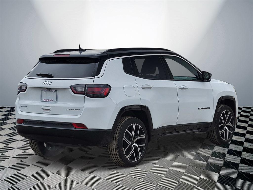 Compass Limited, 4D Sport Utility, 2.0L I4 DOHC, 4WD, Bright White Clearcoat, Black Leather, 10.1'' Touchscreen Display, 2nd Row USB Type A/C Charge Only, Alexa Built-In, Cluster 10.25'' TFT Color Display, Connected Travel & Traffic Services, Diamond Black Door Cladding, Diamond Black Exterior Sill, Diamond Black Fascias, Diamond Black Wheel Flares, Driver Seat Memory, Elite Group, Foot Activated Open 'N Go Liftgate, GPS Navigation, HD Radio, Integrated Voice Command w/Bluetooth, LED Low/Highbeam Projector Headlamps, Power 2-Way Passenger Lumbar Adjust, Power 8-Way Adjust Front Passenger Seat, Power Front/Fixed Rear Full Sunroof, Power Liftgate, Premium Alpine Speaker System, Premium Leather Trimmed Bucket Seats, Premium LED Fog Lamps, Premium Taillamps, Quick Order Package 29G, Reversible Carpet/Vinyl Cargo Mat, SiriusXM w/360L, Sun and Sound Group, Ventilated Front Seats, Wheels: 19'' x 7.5'' Painted Diamond Cut Aluminum.Pinckney Chrysler Dodge Jeep Ram is proud to present this vehicle. Call us at (734) 970-8000 to speak directly with sales. Visit www.PinckneyCDJR.com to view our complete inventory and apply for financing. Contact us to request a custom video walk around and additional pictures. Pricing is market based so we put our best foot forward. Advertised pricing excludes tax, title, registration, documentation, finance charges, out-of-state processing, and other customary or required fees. Out of State Customers: We are conveniently located under an hour from Detroit Metropolitan Airport (DTW). We would be happy to pick you up at the airport or assist you with shipping arrangements.