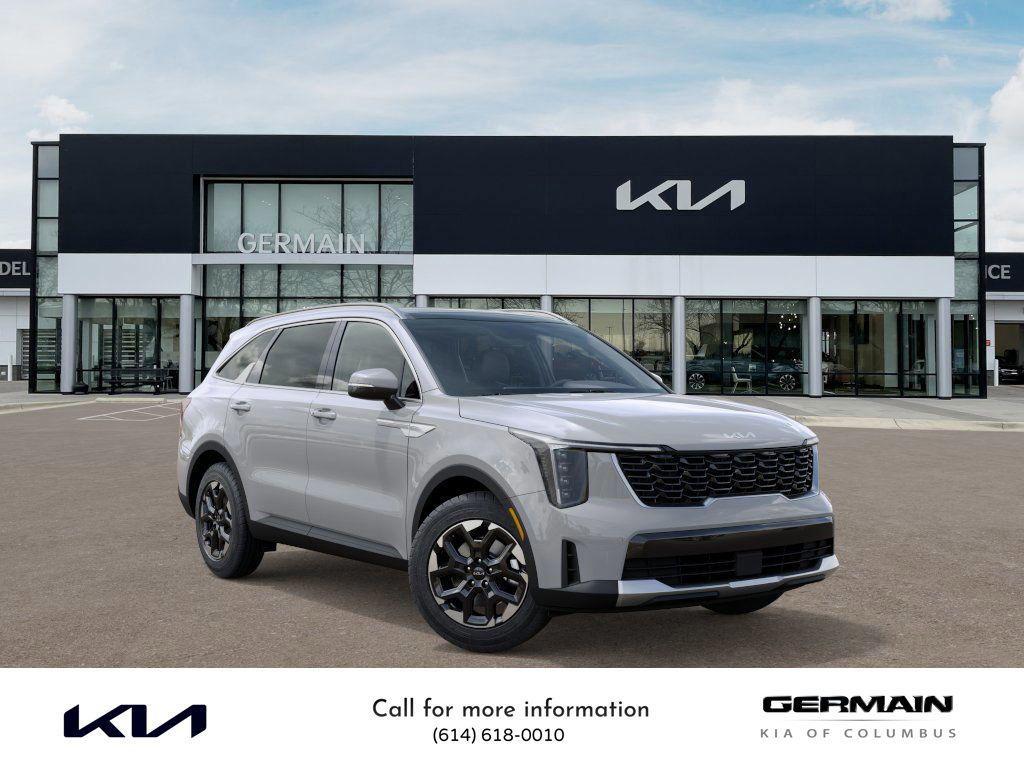 Wolf Gray 2025 Kia Sorento S FWD 8-Speed Automatic 2.5L I4 DGI DOHC 16V LEV3-SULEV30 191hp This vehicle features Panoramic Sunroof Package (LED Interior Lighting and Panoramic Power Sunroof w/Power Sunshade), 3rd row seats: split-bench, 4-Wheel Disc Brakes, 6 Speakers, ABS brakes, Air Conditioning, Alloy wheels, AM/FM radio: SiriusXM, Apple CarPlay & Android Auto, Auto High-beam Headlights, Automatic temperature control, Brake assist, Bumpers: body-color, Carpeted Floor Mats, Delay-off headlights, Driver door bin, Driver vanity mirror, Dual front impact airbags, Dual front side impact airbags, Electronic Stability Control, Emergency communication system: 911 Connect, Exterior Parking Camera Rear, Four wheel independent suspension, Front anti-roll bar, Front Bucket Seats, Front Center Armrest, Front dual zone A/C, Front reading lights, Fully automatic headlights, Heated door mirrors, Heated Front Bucket Seats, Heated front seats, Illuminated entry, Knee airbag, Leather Shift Knob, Leather steering wheel, Low tire pressure warning, Navigation System, Occupant sensing airbag, Outside temperature display, Overhead airbag, Overhead console, Panic alarm, Passenger door bin, Passenger vanity mirror, Power door mirrors, Power driver seat, Power steering, Power windows, Radio data system, Radio: AM/FM Standard Sound System, Rear anti-roll bar, Rear reading lights, Rear seat center armrest, Rear side impact airbag, Rear window defroster, Rear window wiper, Remote keyless entry, Security system, Speed control, Speed-sensing steering, Split folding rear seat, Spoiler, Steering wheel mounted audio controls, SynTex Artificial Leather Seat Trim, Tachometer, Telescoping steering wheel, Tilt steering wheel, Traction control, Trip computer, Turn signal indicator mirrors, Variably intermittent wipers, and Wheels: 18'' Gloss Black Alloy.23/31 City/Highway MPG