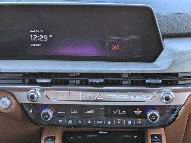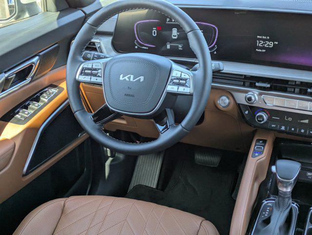 Wolf Gray 2025 Kia Telluride EX X-Line AWD 8-Speed Automatic 3.8L V6 DOHC 3rd row seats: split-bench, 4-Wheel Disc Brakes, 6 Speakers, ABS brakes, Air Conditioning, Alloy wheels, AM/FM radio: SiriusXM, Apple CarPlay & Android Auto, Auto High-beam Headlights, Auto-dimming Rear-View mirror, Auto-leveling suspension, Automatic temperature control, Brake assist, Bumpers: body-color, Carpeted Floor Mats, Compass, Delay-off headlights, Driver door bin, Driver vanity mirror, Dual front impact airbags, Dual front side impact airbags, Electronic Stability Control, Emergency communication system: 911 Connect, Exterior Parking Camera Rear, Four wheel independent suspension, Front anti-roll bar, Front Bucket Seats, Front Center Armrest, Front dual zone A/C, Front reading lights, Fully automatic headlights, Heated & Ventilated Front Bucket Seats, Heated door mirrors, Heated front seats, Heated steering wheel, Illuminated entry, Knee airbag, Leather Seat Trim, Leather Shift Knob, Leather steering wheel, Low tire pressure warning, Navigation System, Occupant sensing airbag, Outside temperature display, Overhead airbag, Overhead console, Panic alarm, Passenger door bin, Passenger vanity mirror, Power door mirrors, Power driver seat, Power Liftgate, Power moonroof, Power passenger seat, Power steering, Power windows, Radio data system, Radio: AM/FM Display Audio System, Rear air conditioning, Rear anti-roll bar, Rear audio controls, Rear reading lights, Rear side impact airbag, Rear window defroster, Rear window wiper, Reclining 3rd row seat, Remote keyless entry, Security system, Speed control, Speed-sensing steering, Split folding rear seat, Spoiler, Steering wheel mounted audio controls, Tachometer, Telescoping steering wheel, Terracotta Interior Color Package, Tilt steering wheel, Tow Hitch w/Cover, Traction control, Trip computer, Turn signal indicator mirrors, Variably intermittent wipers, Ventilated front seats, Wheels: 20 x 7.5 Black Finish X-LINE Exclusive.