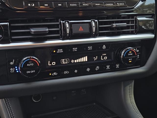 2025 Nissan Pathfinder Platinum FWD 12V power outlets: 2 12V power outlets, 3-point seatbelt: Rear seat center 3-point seatbelt, 3.5L V6 284hp 259ft. lbs., 50 STATE EMISSIONS - INCLUDES EMISSIONS: LEV3-ULEV70 EMISSIONS,EMISSIONS TIERS: TIER 3 BIN 70 EMISSIONS, 9-Speed Shiftable Automatic, ABS Brakes: 4-wheel antilock (ABS) brakes, ABS Brakes: Four channel ABS brakes, Accessory power: Retained accessory power, Adaptive cruise control: Intelligent Cruise Control (ICC) w/Full Speed Range and Hold, Air conditioning: Yes, All-in-one key: All-in-one remote fob and ignition key, Alternator Type: Alternator, Ambient lighting, Amplifier, Antenna: Window grid and fixed audio antenna, Armrests front center: Front seat center armrest, Armrests rear storage: Second-row center armrest storage, Armrests rear: Second-row center armrest, Auto door locks: Auto-locking doors, Auto headlights: Intelligent Auto Headlights (I-AH) auto on/off headlight control, Auto high-beam headlights: High Beam Assist (HBA) auto high-beam headlights, Auto tilt steering wheel: Auto tilt-away steering wheel, Automatic brake hold, Automatic curve slowdown cruise control, Autonomous cruise control: ProPILOT Assist hands-on cruise control, Aux input jack: Auxiliary input jack, Basic warranty: 36 month/36,000 miles, Battery charge warning, Battery run down protection, Battery type: Lead acid battery, BENCH SEAT CARPETED FLOOR MATS (SET OF 4), Bench seats: Third-row bench seat, Beverage holders rear: Rear beverage holders, Beverage holders: Front beverage holders, Blind spot: Blind Spot Intervention (BSI) / Blind Spot Warning (BSW), Body panels: Galvanized steel/aluminum body panels with side impact beams, Bodyside cladding: Black bodyside cladding, Bodyside moldings: Chrome bodyside moldings, Brake assist system, Brake type: 4-wheel disc brakes, Bumper insert: Metal-look front and black rear bumper inserts, Bumper rub strip front: Black front bumper rub strip, Bumpers front: Body-colored front bumper, Bumpers rear: Argent rear bumper, Cabin air filter, Camera: Intelligent Around View Monitor (I-AVM) (3D Fixed Views) aerial view camera, Capless fuel filler, Cargo access: Proximity cargo area access release, Cargo floor type: Carpet cargo area floor, Cargo light: Cargo area light, CARGO PACKAGE - INCLUDES CARGO AREA PROTECTOR,CARGO NET,FIRST AID, Cargo tie downs: Cargo area tie downs, Center airbag front: Front center airbag, Child door locks: Manual rear child safety door locks, Climate control: Automatic climate control, Clock: Digital clock, Concealed cargo storage: Cargo area concealed storage, Configurable instrumentation gauges, Console insert material: Piano black and metal-look console insert, Convex spotter: Passenger convex spotter mirror, Cooled front seats: Ventilated driver and front passenger seats, Corrosion perforation warranty: 60 month/unlimited, Cruise control: Cruise control with steering wheel mounted controls, Cylinder head material: Aluminum cylinder head, Data record