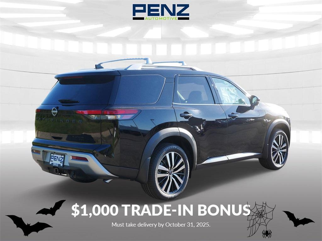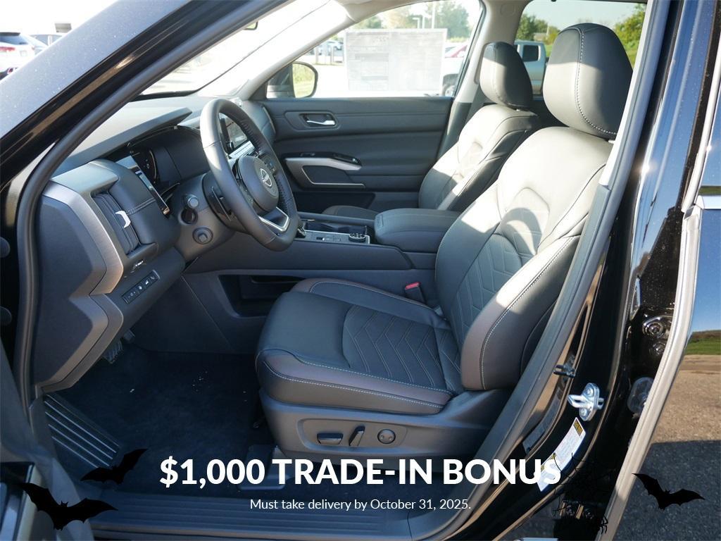 THINK NISSAN - Nissan of Rochester === LIFETIME POWERTRAIN WARRANTY === EVERY NEW VEHICLE Comes with a Lifetime Powertrain Warranty === that Covers the Essential Powertrain Components: Engine, Transmission, Gaskets and Seals. Even Better Yet?! This Vehicle also Comes with a Complimentary 7-DAY RETURN POLICY you Literally Cannot buy the Wrong Car! ** Love What You Drive ** with Peace of Mind... PLUS 1-YEAR of FREE MAINTENANCE!! === Nissan of Rochester - Your Automotive Needs Headquarters === THINK NISSAN ===. Super Black **7 DAY RETURN POLICY**, **BACKUP CAMERA**, **APPLE CAR PLAY**, **ANDROID AUTO**, **REMOTE START**, **HEATED STEERING WHEEL**, **HEATED SEATS**, **COOLED SEATS**, **LEATHER**, **POWER DRIVERS SEAT**, **DUAL CLIMATE CONTROLS**, 4WD, Black Appearance Package, Black Grille, Black Liftgate Emblems, Cargo Area Protector, Cargo Net, Cargo Package, First Aid, Navigation system: NissanConnect with Navigation and Services. 2025 Nissan Pathfinder Platinum 4WD 9-Speed Automatic 3.5L V6 DOHC Recent Arrival! === TEST DRIVE from HOME === PENZ Automotive is going the extra mile for our customers. WE WILL BRING THIS CAR TO YOU FOR A TEST DRIVE! If you elect to move forward, we can also complete your paperwork wherever you are. SHOP FROM HOME, with a Virtual Video Walk Around from one of our Product Specialists. This Vehicle also Comes with a Complimentary CARFAX History Report & With our 7-DAY RETURN POLICY you literally cannot buy the wrong car! ** Love What You Drive ** with Peace of Mind === Nissan of Rochester - Your Automotive Needs Headquarters === THINK NISSAN ===.