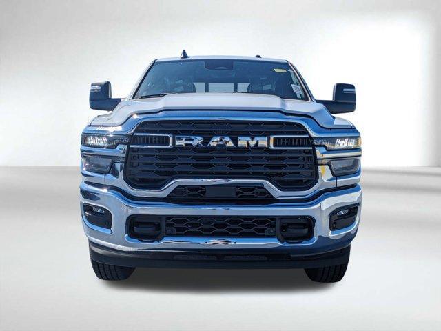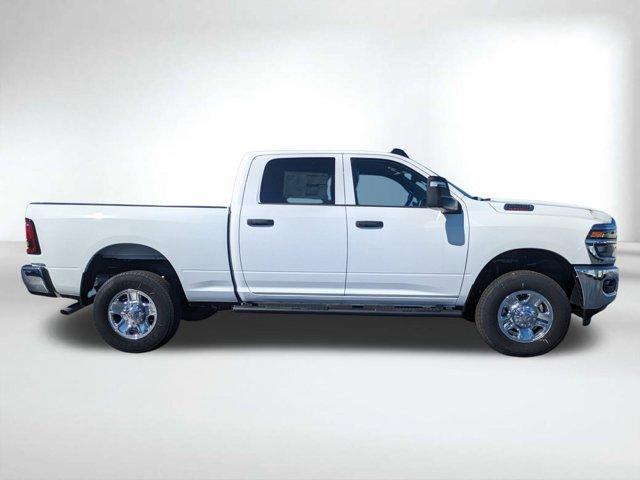 Bright White Clearcoat 2025 Ram 2500 Tradesman 4WD 8-Speed Automatic 6.4L V8 Bed Convenience Group (LED Bed Lighting and MOPAR Spray In Bedliner), Quick Order Package 2UA Tradesman, Tradesman Level 2 Equipment Group (115V Auxiliary Front Power Outlet, 12 Touchscreen Display, 2 Way Rear Headrest Seat, 4 Way Front Headrests, 40/20/40 Split Bench Seat, 400W Inverter, 4G LTE Wi-Fi Hot Spot, Air Conditioning ATC w/Dual Zone Control, Alexa Built-In, Anti-Spin Differential Rear Axle, Apple CarPlay, Auto-Dimming Rear-View Mirror, Black Exterior Mirrors, Bright Front Bumper, Bright Rear Bumper, Carpet Floor Covering, Center Hub, Chrome Grille Surround, Cloth 40/20/40 Bench Seat, Connected Travel & Traffic Services, Connectivity - US/Canada, Disassociated Touchscreen Display, Emergency Vehicle Alert System (EVAS), Exterior 115V AC Outlet, Exterior Mirrors Courtesy Lamps, Exterior Mirrors w/Heating Element, Exterior Mirrors w/Supplemental Signals, Front & Rear Floor Mats, Front Armrest w/Cupholders, Global Telematics Box Module (TBM), Google Android Auto, GPS Antenna Input, GPS Navigation, HD Radio, Integrated Voice Command w/Bluetooth, Manual Adjust 4-Way Driver Seat, Manual Adjust 4-Way Front Passenger Seat, Manual Folding Exterior Mirrors, Manual Telescoping Mirrors, Matte Black Mesh Grille w/Chrome, Mirror Running Lights, Mopar Black Tubular Side Steps, Off-Road Info Pages, ParkSense Front/Rear Park Assist System, Power Adjust Mirrors, Power Adjustable Convex Aux Mirrors, Power Heated Folding Telescope Mirrors, Radio: Uconnect 5 Nav w/12.0 Display, Rear Folding Seat, Rear Power Sliding Window, Remote USB Port - Charge Only, Selectable Tire Fill Alert, SiriusXM Radio Service, SiriusXM w/360L, Storage Tray, Tinted Acoustic Windshield Glass, Trailer Tow Pages, and Wheels: 18 x 8.0 Steel Chrome Clad), 3.73 Axle Ratio, 4-Wheel Disc Brakes, 6 Speakers, ABS brakes, Add Back Vinyl Seat, Air Conditioning, AM/FM radio: SiriusXM, Apple CarPlay/Android Auto, Black Wheel Center Hub, Brake assist, Compass, Dash Pass Thru Wire Circuits, Delay-off headlights, Driver door bin, Dual front impact airbags, Dual front side impact airbags, Electronic Stability Control, Front anti-roll bar, Front Center Armrest w/Storage, Front fog lights, Front License Plate Bracket, Front reading lights, Fully automatic headlights, Heavy Duty Vinyl 40/20/40 Split Bench Seat, I/P Mounted Auxiliary Switches, Illuminated entry, Low tire pressure warning, Manufacturer's Statement of Origin, MOPAR Front & Rear Rubber Floor Mats, Occupant sensing airbag, Outside temperature display, Overhead airbag, Overhead console, Panic alarm, ParkView Rear Back-Up Camera, Passenger door bin, Passenger vanity mirror, Power steering, Power windows, Radio data system, Radio: Uconnect 5 w/8.4 Display, Rear anti-roll bar, Rear step bumper, Rear window defroster, Remote keyless entry, Speed control, Tachometer, Tilt steering wheel, Traction control, Upfitter Electronic Module (VSIM), Variably intermittent wipers, V